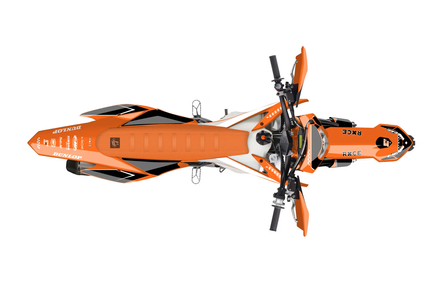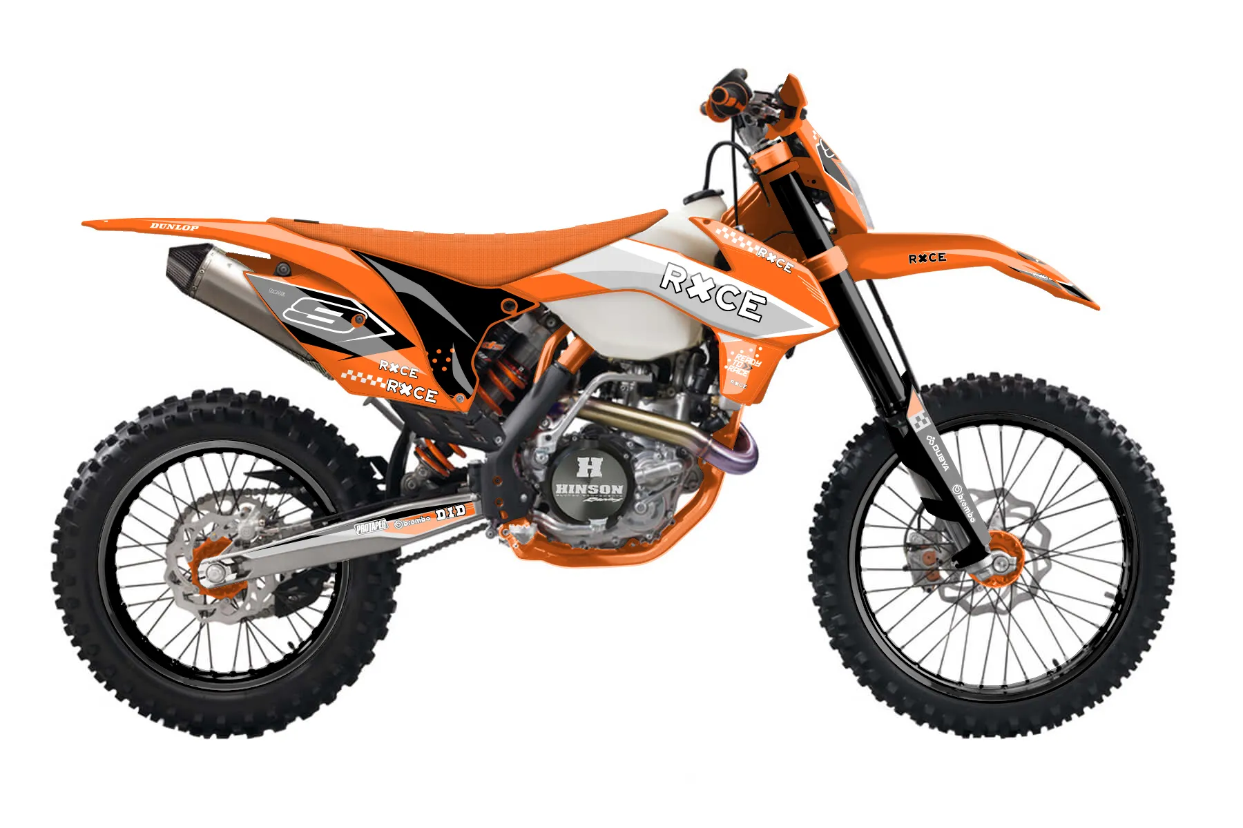 «Data» — готовый комплект графики серии Staple для KTM Enduro Graphic Kit KTM EXC-F 500 2014. В комплекте: графика на бак и боковые облицовки, крылья (переднее и заднее), передний щиток, номерные таблички, защита вилки. Материал: ПВХ-винил 80 мкр с холодной ламинацией 300 мкр, общая толщина 380 мкр; покрытие глянцевое или матовое на выбор. Устойчив к UV-излучению, воде, бензину и мойке высокого давления. Клей акриловый на сольвентной основе — постоянный, для гибких пластиков. На простых поверхностях монтируется без нагрева; для сложных изгибов рекомендуем фен. Этот пресет можно заказать как есть или взять за основу в конструкторе: поменять цвета, добавить стартовый номер и свой бренд. Производство — 3–5 рабочих дней, доставка по России СДЭКом или Почтой, по СНГ — курьерскими службами.