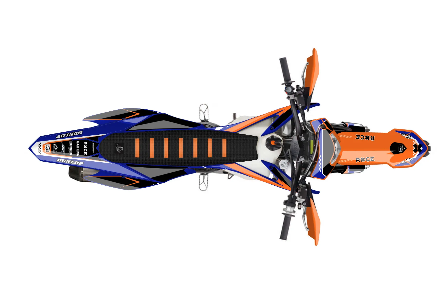 «New Era» — готовый комплект графики серии Staple для KTM Enduro Graphic Kit KTM EXC-F 500 2014. В комплекте: графика на бак и боковые облицовки, крылья (переднее и заднее), передний щиток, номерные таблички, защита вилки. Материал: ПВХ-винил 80 мкр с холодной ламинацией 300 мкр, общая толщина 380 мкр; покрытие глянцевое или матовое на выбор. Устойчив к UV-излучению, воде, бензину и мойке высокого давления. Клей акриловый на сольвентной основе — постоянный, для гибких пластиков. На простых поверхностях монтируется без нагрева; для сложных изгибов рекомендуем фен. Этот пресет можно заказать как есть или взять за основу в конструкторе: поменять цвета, добавить стартовый номер и свой бренд. Производство — 3–5 рабочих дней, доставка по России СДЭКом или Почтой, по СНГ — курьерскими службами.