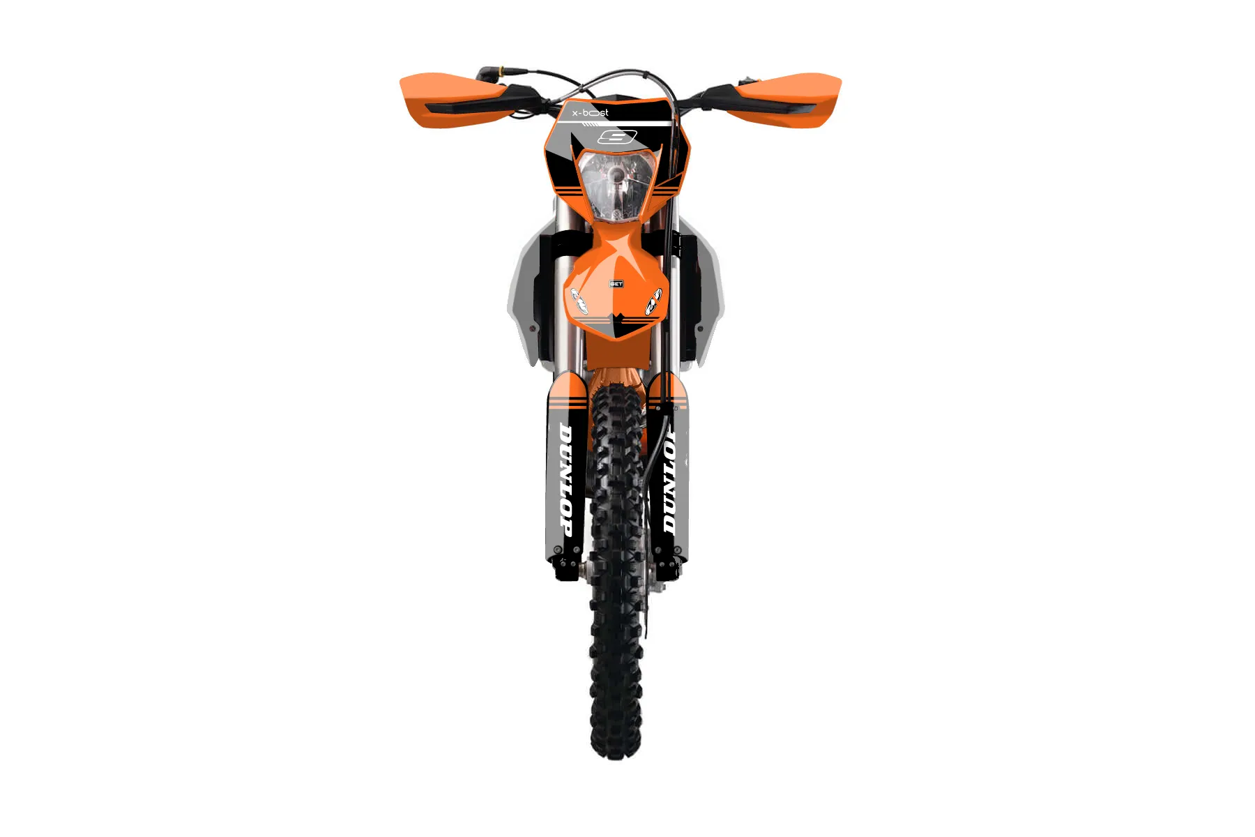 «Crowning» — готовый комплект графики серии Untucked для KTM Enduro Graphic Kit KTM EXC-F 500 2014. В комплекте: графика на бак и боковые облицовки, крылья (переднее и заднее), передний щиток, номерные таблички, защита вилки. Материал: ПВХ-винил 80 мкр с холодной ламинацией 300 мкр, общая толщина 380 мкр; покрытие глянцевое или матовое на выбор. Устойчив к UV-излучению, воде, бензину и мойке высокого давления. Клей акриловый на сольвентной основе — постоянный, для гибких пластиков. На простых поверхностях монтируется без нагрева; для сложных изгибов рекомендуем фен. Этот пресет можно заказать как есть или взять за основу в конструкторе: поменять цвета, добавить стартовый номер и свой бренд. Производство — 3–5 рабочих дней, доставка по России СДЭКом или Почтой, по СНГ — курьерскими службами.