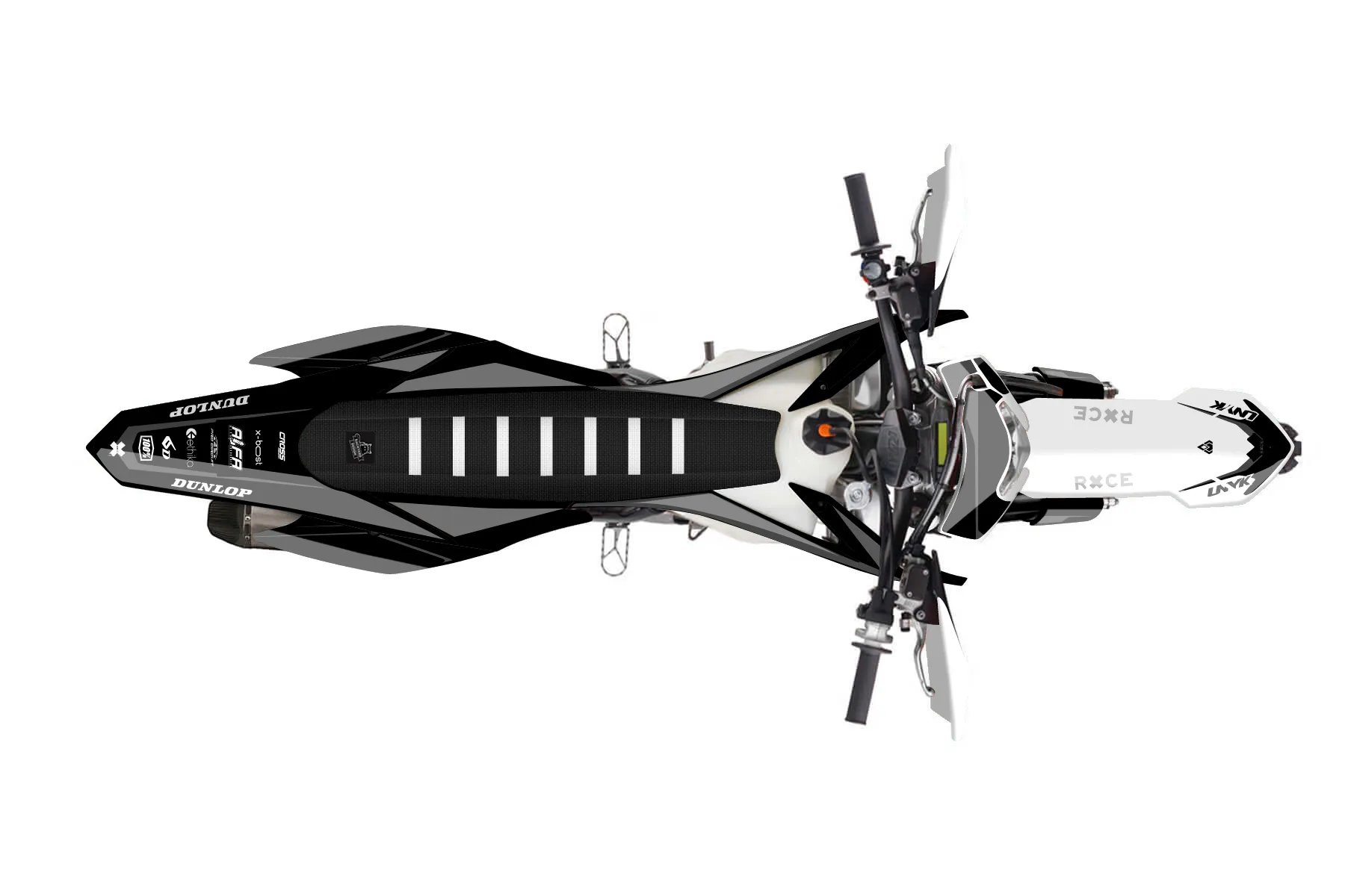 «Decal» — готовый комплект графики серии Flow для KTM Enduro Graphic Kit KTM EXC-F 500 2016. В комплекте: графика на бак и боковые облицовки, крылья (переднее и заднее), передний щиток, номерные таблички, защита вилки. Материал: ПВХ-винил 80 мкр с холодной ламинацией 300 мкр, общая толщина 380 мкр; покрытие глянцевое или матовое на выбор. Устойчив к UV-излучению, воде, бензину и мойке высокого давления. Клей акриловый на сольвентной основе — постоянный, для гибких пластиков. На простых поверхностях монтируется без нагрева; для сложных изгибов рекомендуем фен. Этот пресет можно заказать как есть или взять за основу в конструкторе: поменять цвета, добавить стартовый номер и свой бренд. Производство — 3–5 рабочих дней, доставка по России СДЭКом или Почтой, по СНГ — курьерскими службами.