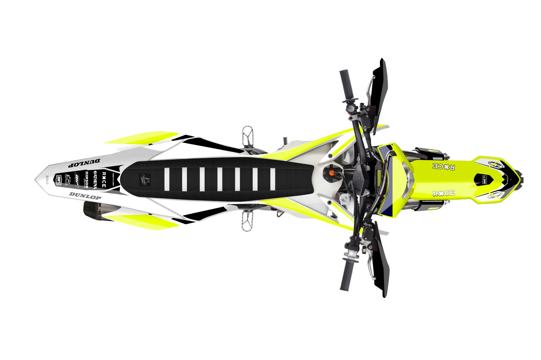 «Rise Fluo» — готовый комплект графики серии Flow для KTM Enduro Graphic Kit KTM EXC-F 500 2016. В комплекте: графика на бак и боковые облицовки, крылья (переднее и заднее), передний щиток, номерные таблички, защита вилки. Материал: ПВХ-винил 80 мкр с холодной ламинацией 300 мкр, общая толщина 380 мкр; покрытие глянцевое или матовое на выбор. Устойчив к UV-излучению, воде, бензину и мойке высокого давления. Клей акриловый на сольвентной основе — постоянный, для гибких пластиков. На простых поверхностях монтируется без нагрева; для сложных изгибов рекомендуем фен. Этот пресет можно заказать как есть или взять за основу в конструкторе: поменять цвета, добавить стартовый номер и свой бренд. Производство — 3–5 рабочих дней, доставка по России СДЭКом или Почтой, по СНГ — курьерскими службами.