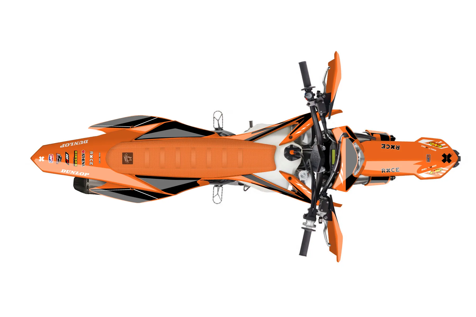 «Express» — готовый комплект графики серии Maverick для KTM Enduro Graphic Kit KTM EXC-F 500 2016. В комплекте: графика на бак и боковые облицовки, крылья (переднее и заднее), передний щиток, номерные таблички, защита вилки. Материал: ПВХ-винил 80 мкр с холодной ламинацией 300 мкр, общая толщина 380 мкр; покрытие глянцевое или матовое на выбор. Устойчив к UV-излучению, воде, бензину и мойке высокого давления. Клей акриловый на сольвентной основе — постоянный, для гибких пластиков. На простых поверхностях монтируется без нагрева; для сложных изгибов рекомендуем фен. Этот пресет можно заказать как есть или взять за основу в конструкторе: поменять цвета, добавить стартовый номер и свой бренд. Производство — 3–5 рабочих дней, доставка по России СДЭКом или Почтой, по СНГ — курьерскими службами.