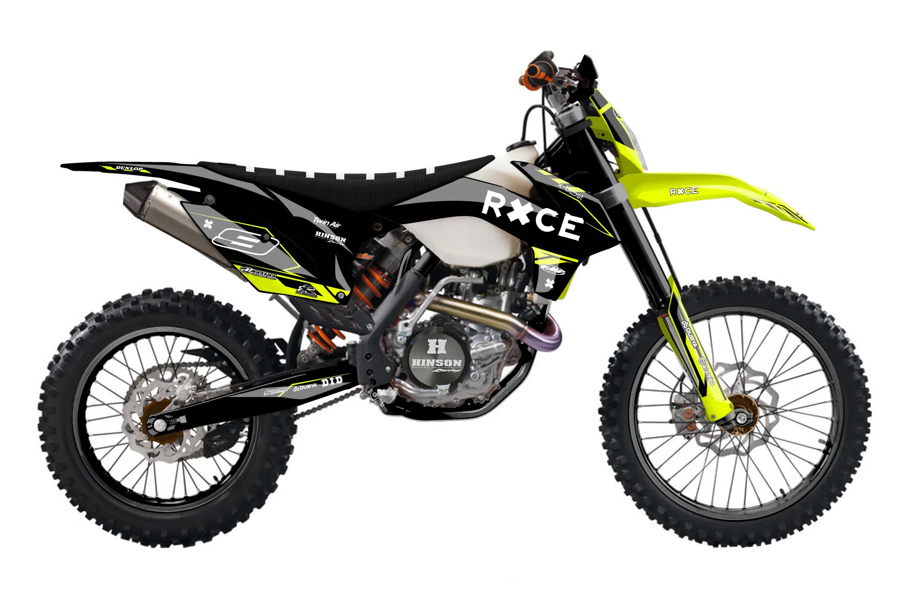 «Kitted Neon» — готовый комплект графики серии Maverick для KTM Enduro Graphic Kit KTM EXC-F 500 2016. В комплекте: графика на бак и боковые облицовки, крылья (переднее и заднее), передний щиток, номерные таблички, защита вилки. Материал: ПВХ-винил 80 мкр с холодной ламинацией 300 мкр, общая толщина 380 мкр; покрытие глянцевое или матовое на выбор. Устойчив к UV-излучению, воде, бензину и мойке высокого давления. Клей акриловый на сольвентной основе — постоянный, для гибких пластиков. На простых поверхностях монтируется без нагрева; для сложных изгибов рекомендуем фен. Этот пресет можно заказать как есть или взять за основу в конструкторе: поменять цвета, добавить стартовый номер и свой бренд. Производство — 3–5 рабочих дней, доставка по России СДЭКом или Почтой, по СНГ — курьерскими службами.