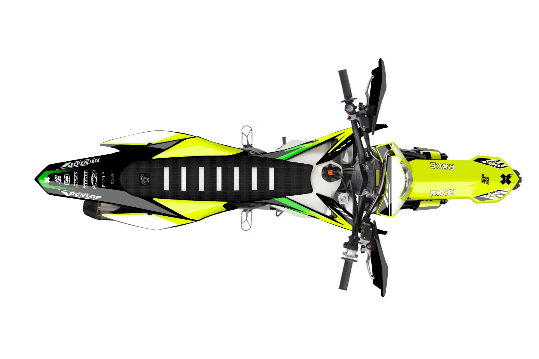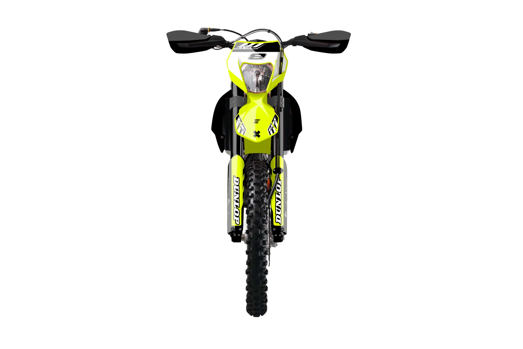 «Volt Neon» — готовый комплект графики серии Maverick для KTM Enduro Graphic Kit KTM EXC-F 500 2016. В комплекте: графика на бак и боковые облицовки, крылья (переднее и заднее), передний щиток, номерные таблички, защита вилки. Материал: ПВХ-винил 80 мкр с холодной ламинацией 300 мкр, общая толщина 380 мкр; покрытие глянцевое или матовое на выбор. Устойчив к UV-излучению, воде, бензину и мойке высокого давления. Клей акриловый на сольвентной основе — постоянный, для гибких пластиков. На простых поверхностях монтируется без нагрева; для сложных изгибов рекомендуем фен. Этот пресет можно заказать как есть или взять за основу в конструкторе: поменять цвета, добавить стартовый номер и свой бренд. Производство — 3–5 рабочих дней, доставка по России СДЭКом или Почтой, по СНГ — курьерскими службами.
