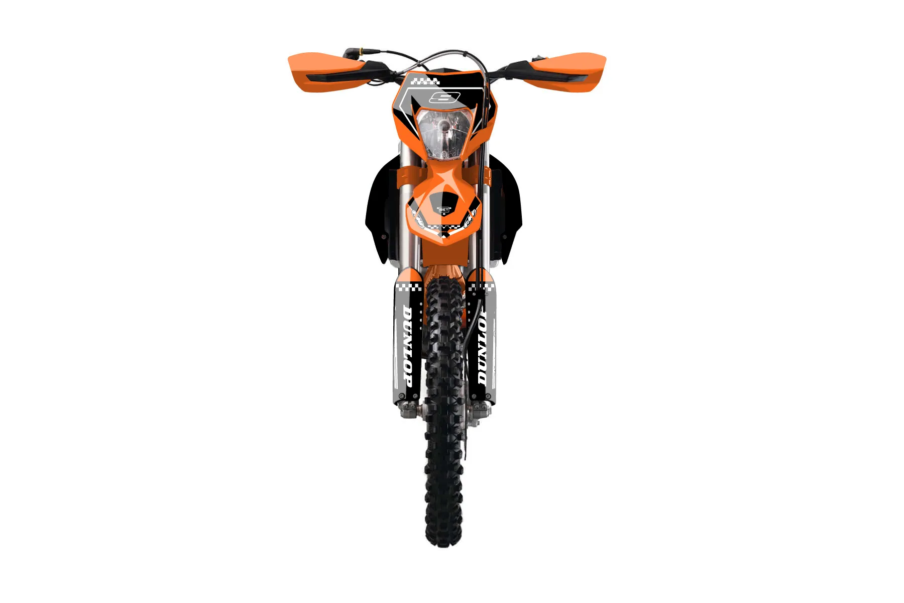 «4Time» — готовый комплект графики серии Staple для KTM Enduro Graphic Kit KTM EXC-F 500 2016. В комплекте: графика на бак и боковые облицовки, крылья (переднее и заднее), передний щиток, номерные таблички, защита вилки. Материал: ПВХ-винил 80 мкр с холодной ламинацией 300 мкр, общая толщина 380 мкр; покрытие глянцевое или матовое на выбор. Устойчив к UV-излучению, воде, бензину и мойке высокого давления. Клей акриловый на сольвентной основе — постоянный, для гибких пластиков. На простых поверхностях монтируется без нагрева; для сложных изгибов рекомендуем фен. Этот пресет можно заказать как есть или взять за основу в конструкторе: поменять цвета, добавить стартовый номер и свой бренд. Производство — 3–5 рабочих дней, доставка по России СДЭКом или Почтой, по СНГ — курьерскими службами.