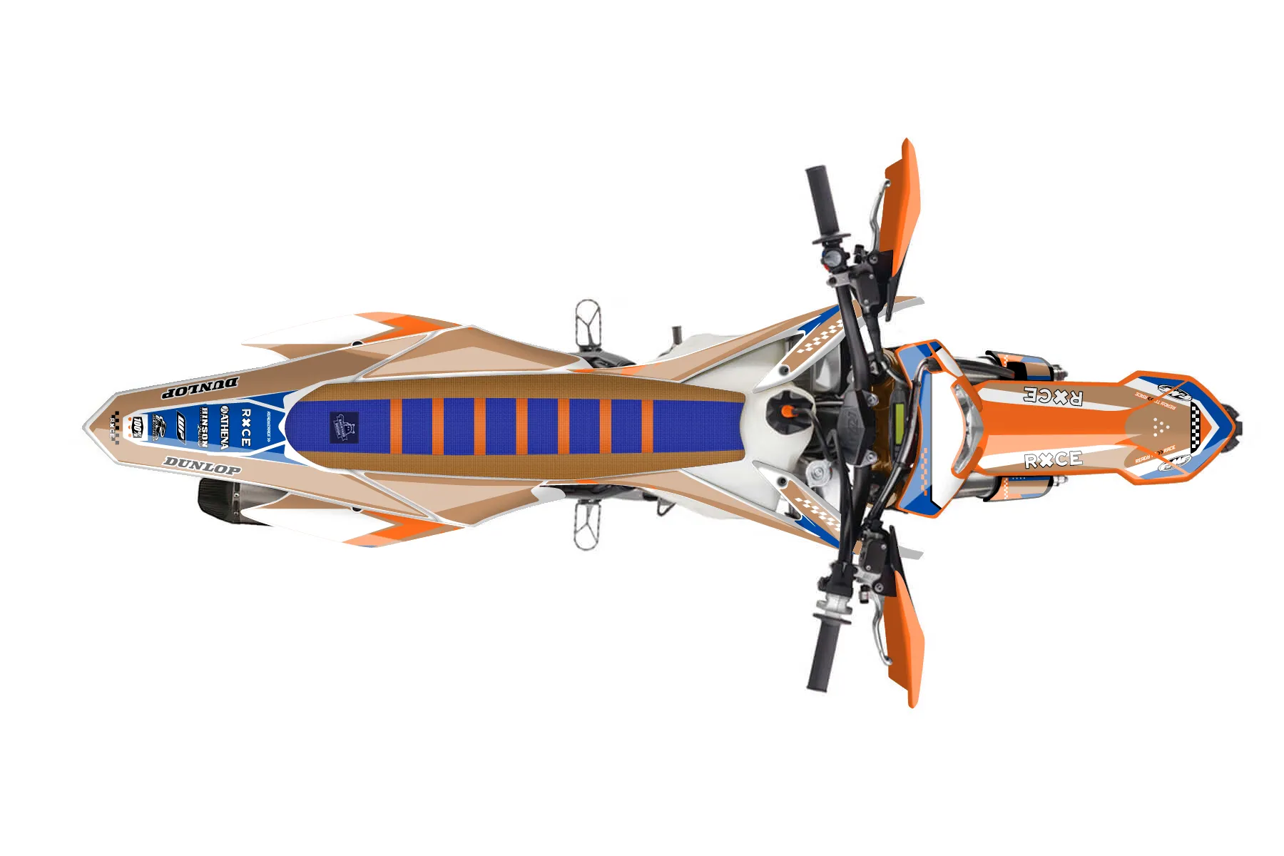 «CustomDesign» — готовый комплект графики серии Staple для KTM Enduro Graphic Kit KTM EXC-F 500 2016. В комплекте: графика на бак и боковые облицовки, крылья (переднее и заднее), передний щиток, номерные таблички, защита вилки. Материал: ПВХ-винил 80 мкр с холодной ламинацией 300 мкр, общая толщина 380 мкр; покрытие глянцевое или матовое на выбор. Устойчив к UV-излучению, воде, бензину и мойке высокого давления. Клей акриловый на сольвентной основе — постоянный, для гибких пластиков. На простых поверхностях монтируется без нагрева; для сложных изгибов рекомендуем фен. Этот пресет можно заказать как есть или взять за основу в конструкторе: поменять цвета, добавить стартовый номер и свой бренд. Производство — 3–5 рабочих дней, доставка по России СДЭКом или Почтой, по СНГ — курьерскими службами.