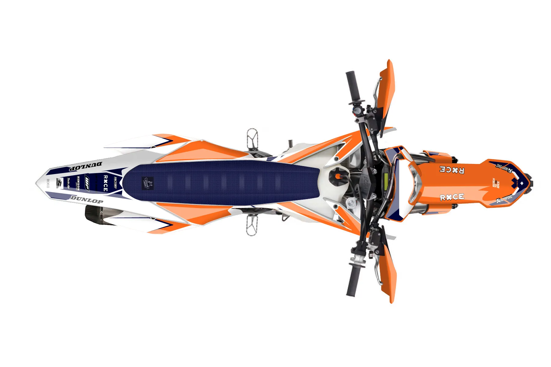 «Swoosh» — готовый комплект графики серии Staple для KTM Enduro Graphic Kit KTM EXC-F 500 2016. В комплекте: графика на бак и боковые облицовки, крылья (переднее и заднее), передний щиток, номерные таблички, защита вилки. Материал: ПВХ-винил 80 мкр с холодной ламинацией 300 мкр, общая толщина 380 мкр; покрытие глянцевое или матовое на выбор. Устойчив к UV-излучению, воде, бензину и мойке высокого давления. Клей акриловый на сольвентной основе — постоянный, для гибких пластиков. На простых поверхностях монтируется без нагрева; для сложных изгибов рекомендуем фен. Этот пресет можно заказать как есть или взять за основу в конструкторе: поменять цвета, добавить стартовый номер и свой бренд. Производство — 3–5 рабочих дней, доставка по России СДЭКом или Почтой, по СНГ — курьерскими службами.