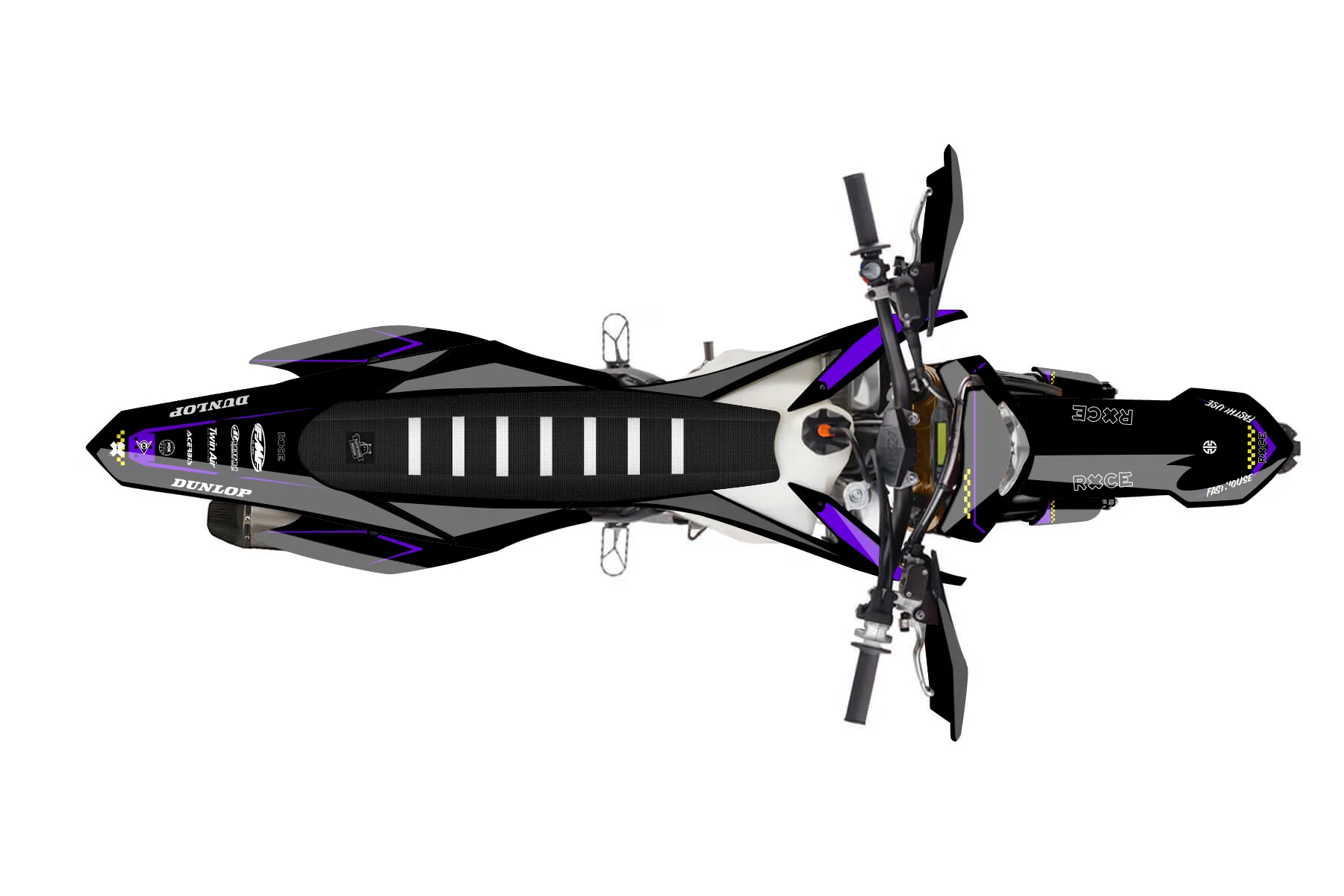 «Virtual» — готовый комплект графики серии Staple для KTM Enduro Graphic Kit KTM EXC-F 500 2016. В комплекте: графика на бак и боковые облицовки, крылья (переднее и заднее), передний щиток, номерные таблички, защита вилки. Материал: ПВХ-винил 80 мкр с холодной ламинацией 300 мкр, общая толщина 380 мкр; покрытие глянцевое или матовое на выбор. Устойчив к UV-излучению, воде, бензину и мойке высокого давления. Клей акриловый на сольвентной основе — постоянный, для гибких пластиков. На простых поверхностях монтируется без нагрева; для сложных изгибов рекомендуем фен. Этот пресет можно заказать как есть или взять за основу в конструкторе: поменять цвета, добавить стартовый номер и свой бренд. Производство — 3–5 рабочих дней, доставка по России СДЭКом или Почтой, по СНГ — курьерскими службами.