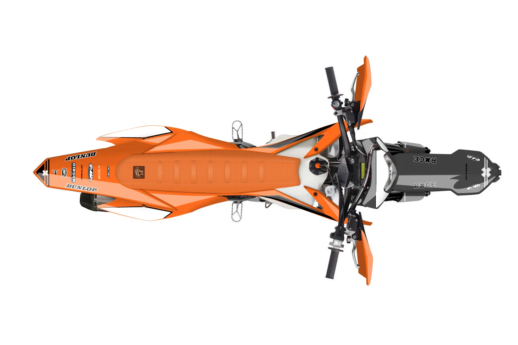 «Certain» — готовый комплект графики серии Untucked для KTM Enduro Graphic Kit KTM EXC-F 500 2016. В комплекте: графика на бак и боковые облицовки, крылья (переднее и заднее), передний щиток, номерные таблички, защита вилки. Материал: ПВХ-винил 80 мкр с холодной ламинацией 300 мкр, общая толщина 380 мкр; покрытие глянцевое или матовое на выбор. Устойчив к UV-излучению, воде, бензину и мойке высокого давления. Клей акриловый на сольвентной основе — постоянный, для гибких пластиков. На простых поверхностях монтируется без нагрева; для сложных изгибов рекомендуем фен. Этот пресет можно заказать как есть или взять за основу в конструкторе: поменять цвета, добавить стартовый номер и свой бренд. Производство — 3–5 рабочих дней, доставка по России СДЭКом или Почтой, по СНГ — курьерскими службами.