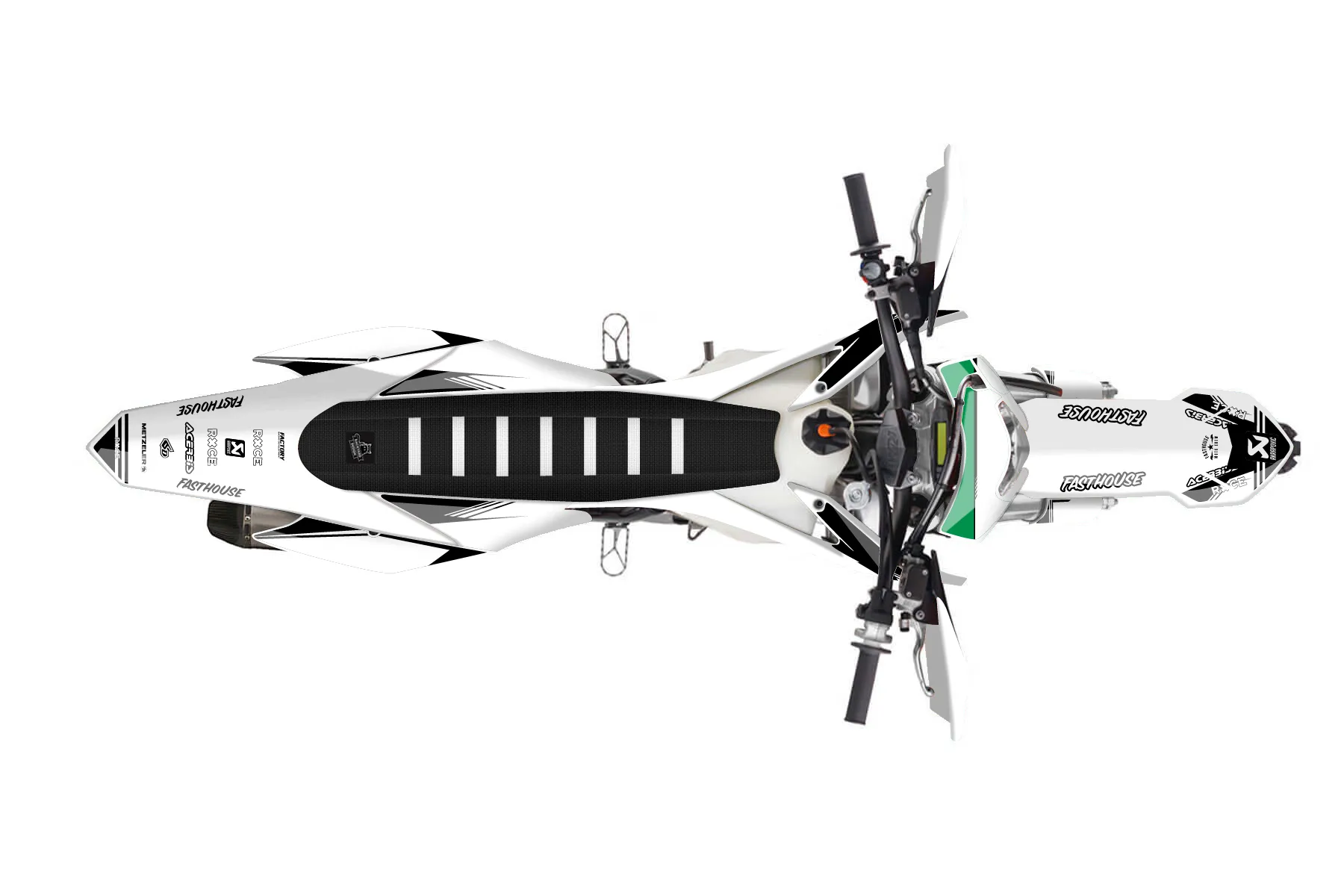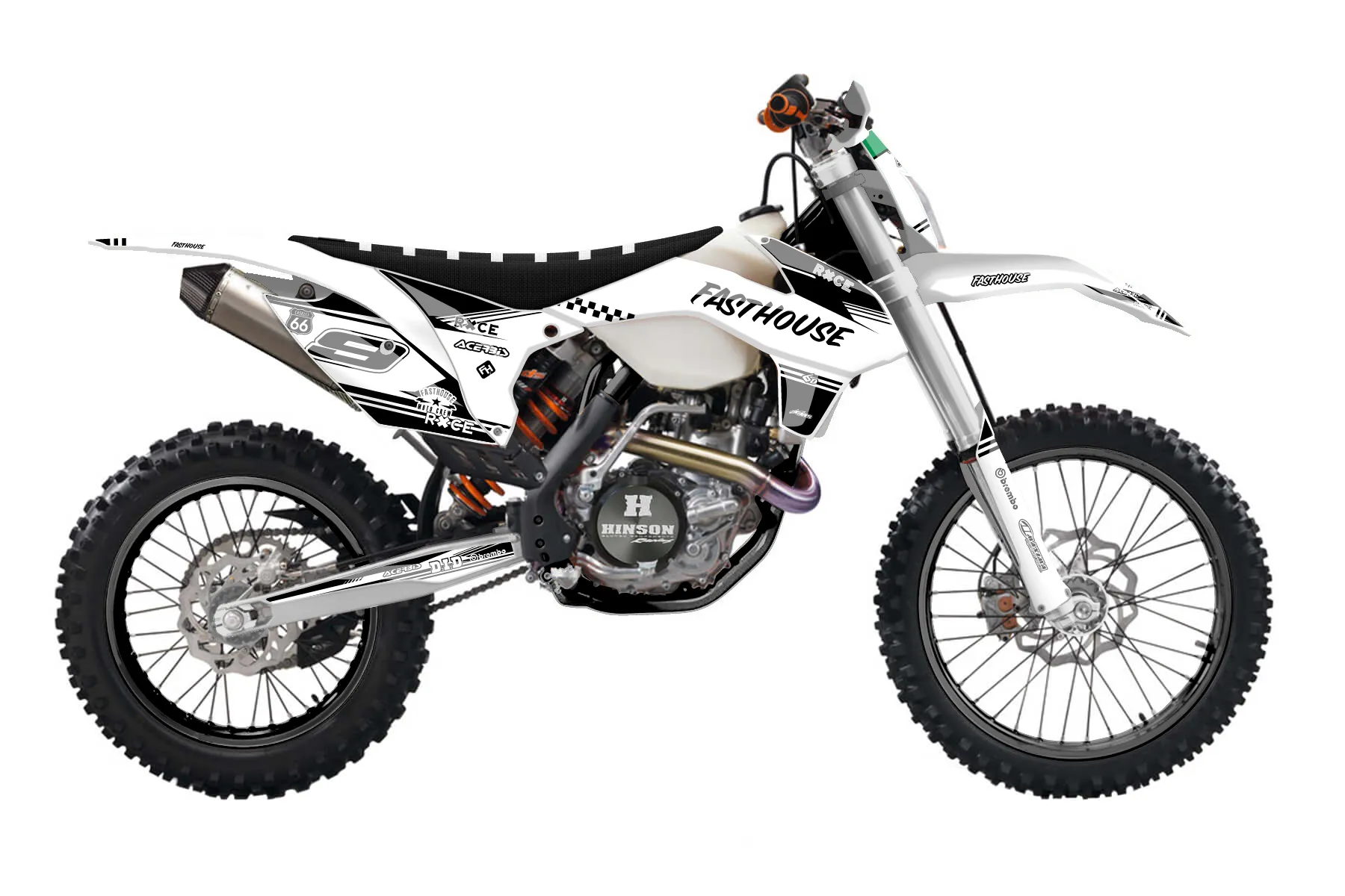«FastHouse1» — готовый комплект графики серии Untucked для KTM Enduro Graphic Kit KTM EXC-F 500 2016. В комплекте: графика на бак и боковые облицовки, крылья (переднее и заднее), передний щиток, номерные таблички, защита вилки. Материал: ПВХ-винил 80 мкр с холодной ламинацией 300 мкр, общая толщина 380 мкр; покрытие глянцевое или матовое на выбор. Устойчив к UV-излучению, воде, бензину и мойке высокого давления. Клей акриловый на сольвентной основе — постоянный, для гибких пластиков. На простых поверхностях монтируется без нагрева; для сложных изгибов рекомендуем фен. Этот пресет можно заказать как есть или взять за основу в конструкторе: поменять цвета, добавить стартовый номер и свой бренд. Производство — 3–5 рабочих дней, доставка по России СДЭКом или Почтой, по СНГ — курьерскими службами.