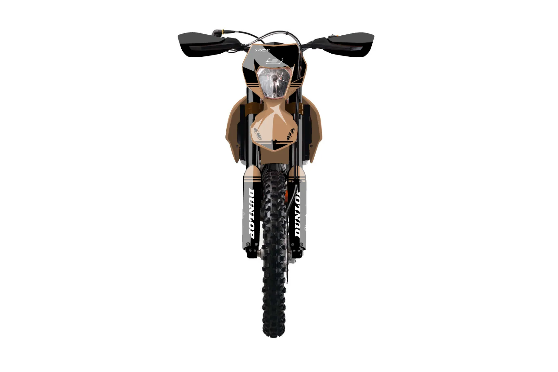 «Magnetic» — готовый комплект графики серии Untucked для KTM Enduro Graphic Kit KTM EXC-F 500 2016. В комплекте: графика на бак и боковые облицовки, крылья (переднее и заднее), передний щиток, номерные таблички, защита вилки. Материал: ПВХ-винил 80 мкр с холодной ламинацией 300 мкр, общая толщина 380 мкр; покрытие глянцевое или матовое на выбор. Устойчив к UV-излучению, воде, бензину и мойке высокого давления. Клей акриловый на сольвентной основе — постоянный, для гибких пластиков. На простых поверхностях монтируется без нагрева; для сложных изгибов рекомендуем фен. Этот пресет можно заказать как есть или взять за основу в конструкторе: поменять цвета, добавить стартовый номер и свой бренд. Производство — 3–5 рабочих дней, доставка по России СДЭКом или Почтой, по СНГ — курьерскими службами.