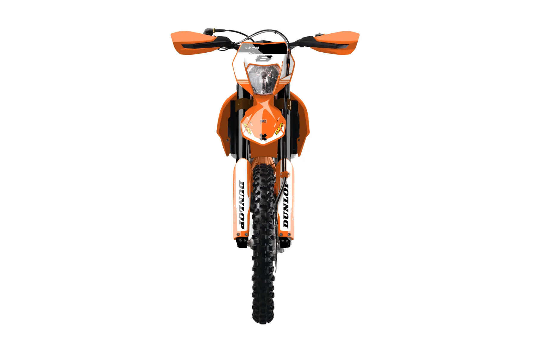«Total» — готовый комплект графики серии Untucked для KTM Enduro Graphic Kit KTM EXC-F 500 2016. В комплекте: графика на бак и боковые облицовки, крылья (переднее и заднее), передний щиток, номерные таблички, защита вилки. Материал: ПВХ-винил 80 мкр с холодной ламинацией 300 мкр, общая толщина 380 мкр; покрытие глянцевое или матовое на выбор. Устойчив к UV-излучению, воде, бензину и мойке высокого давления. Клей акриловый на сольвентной основе — постоянный, для гибких пластиков. На простых поверхностях монтируется без нагрева; для сложных изгибов рекомендуем фен. Этот пресет можно заказать как есть или взять за основу в конструкторе: поменять цвета, добавить стартовый номер и свой бренд. Производство — 3–5 рабочих дней, доставка по России СДЭКом или Почтой, по СНГ — курьерскими службами.