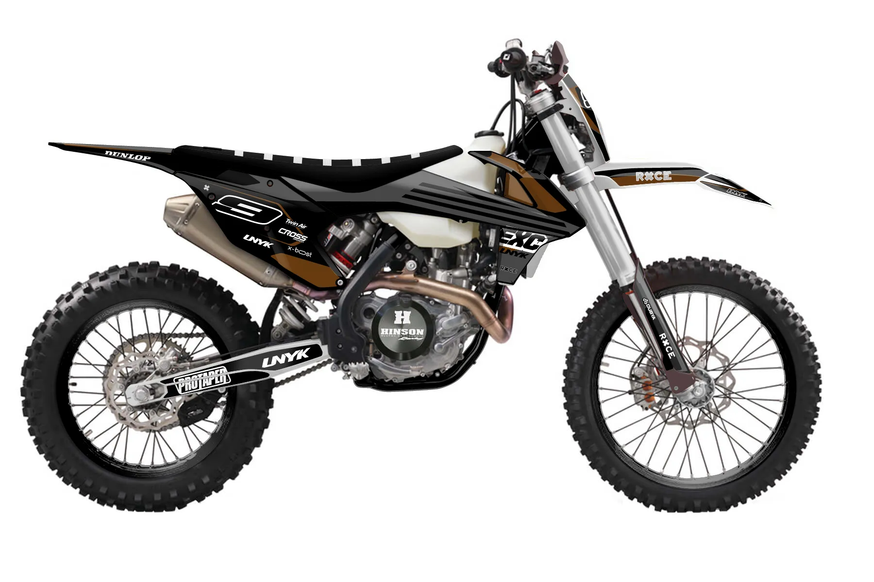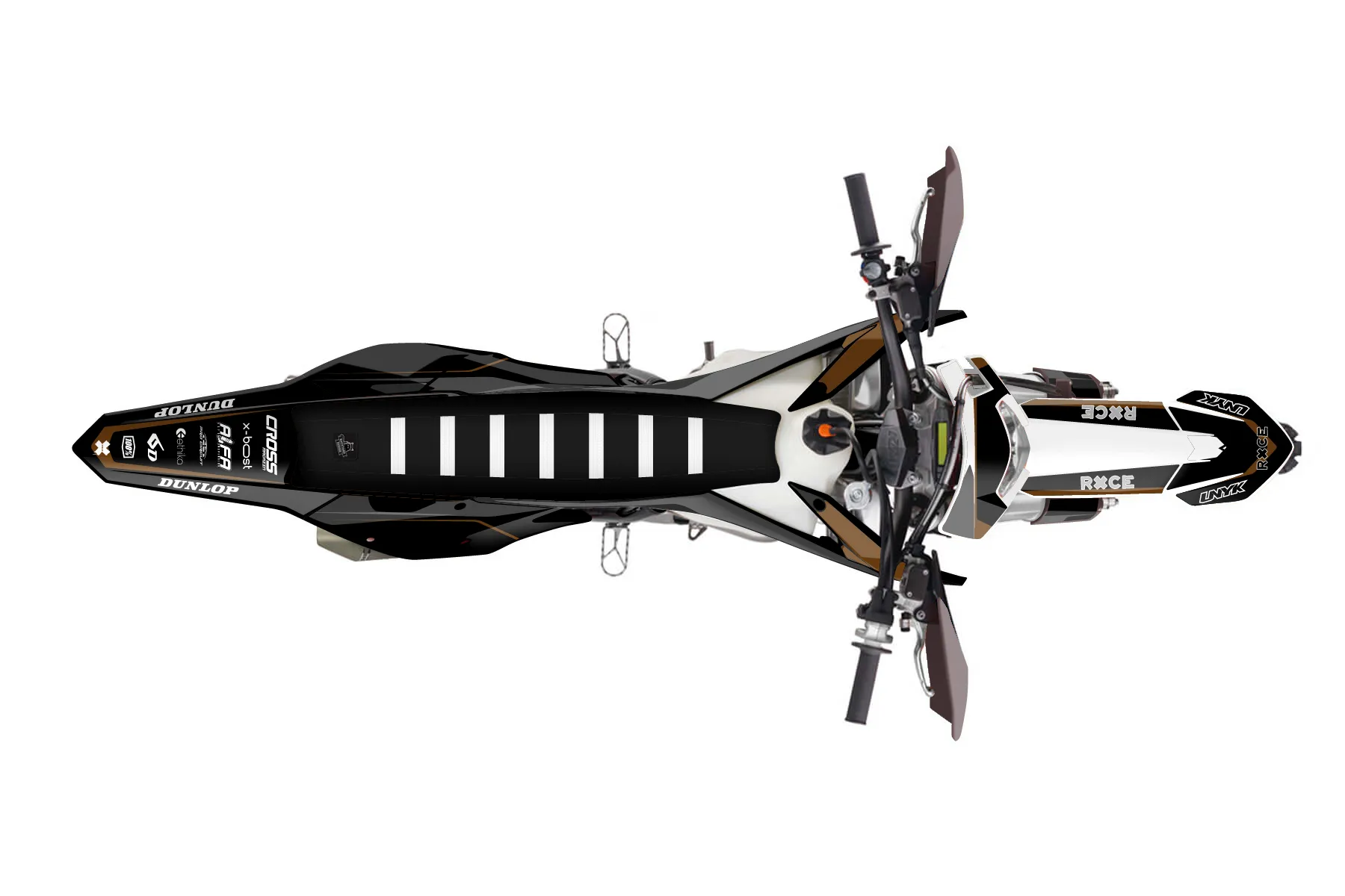 «coryclassy» — готовый комплект графики серии Flow для KTM Enduro Graphic Kit KTM EXC-F 500 2017. В комплекте: графика на бак и боковые облицовки, крылья (переднее и заднее), передний щиток, номерные таблички, защита вилки. Материал: ПВХ-винил 80 мкр с холодной ламинацией 300 мкр, общая толщина 380 мкр; покрытие глянцевое или матовое на выбор. Устойчив к UV-излучению, воде, бензину и мойке высокого давления. Клей акриловый на сольвентной основе — постоянный, для гибких пластиков. На простых поверхностях монтируется без нагрева; для сложных изгибов рекомендуем фен. Этот пресет можно заказать как есть или взять за основу в конструкторе: поменять цвета, добавить стартовый номер и свой бренд. Производство — 3–5 рабочих дней, доставка по России СДЭКом или Почтой, по СНГ — курьерскими службами.