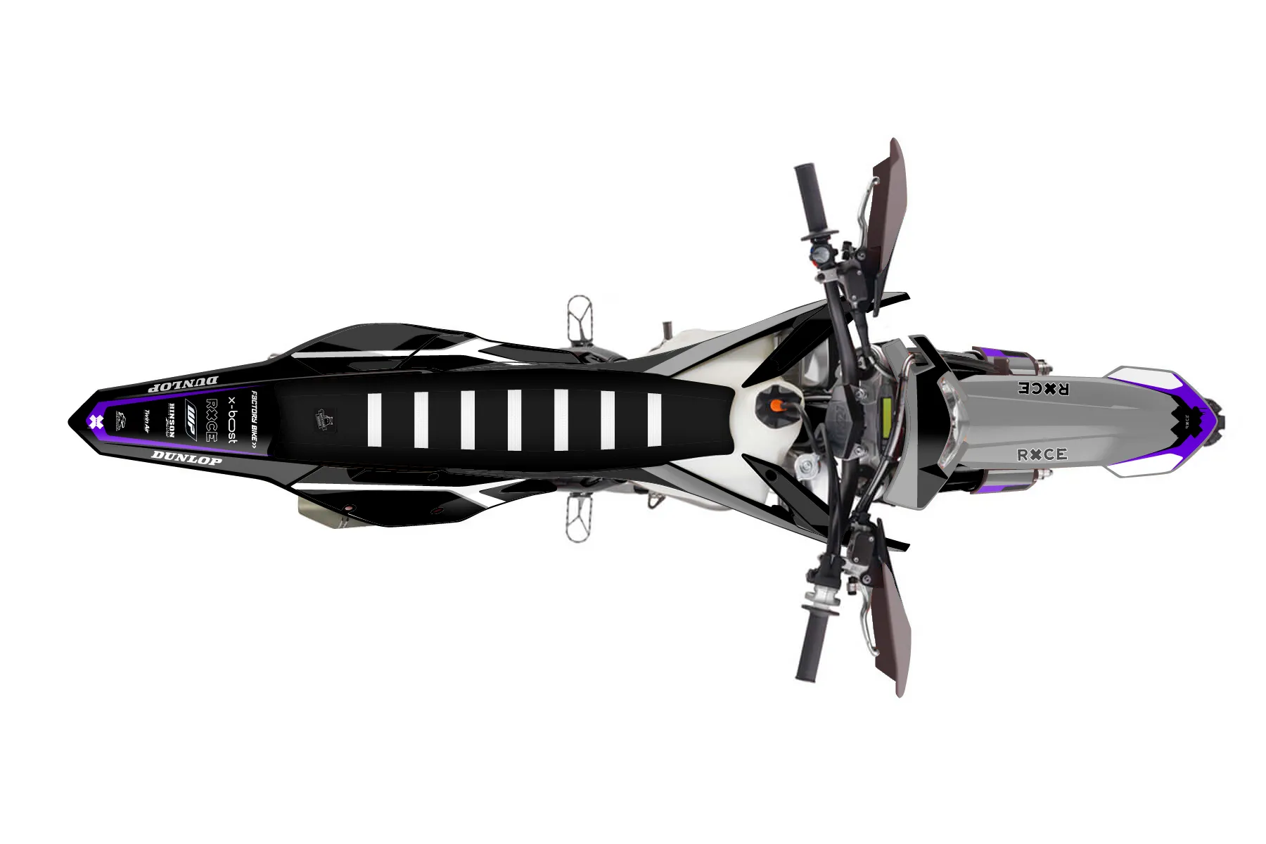 «Cyber Pirate» — готовый комплект графики серии Flow для KTM Enduro Graphic Kit KTM EXC-F 500 2017. В комплекте: графика на бак и боковые облицовки, крылья (переднее и заднее), передний щиток, номерные таблички, защита вилки. Материал: ПВХ-винил 80 мкр с холодной ламинацией 300 мкр, общая толщина 380 мкр; покрытие глянцевое или матовое на выбор. Устойчив к UV-излучению, воде, бензину и мойке высокого давления. Клей акриловый на сольвентной основе — постоянный, для гибких пластиков. На простых поверхностях монтируется без нагрева; для сложных изгибов рекомендуем фен. Этот пресет можно заказать как есть или взять за основу в конструкторе: поменять цвета, добавить стартовый номер и свой бренд. Производство — 3–5 рабочих дней, доставка по России СДЭКом или Почтой, по СНГ — курьерскими службами.