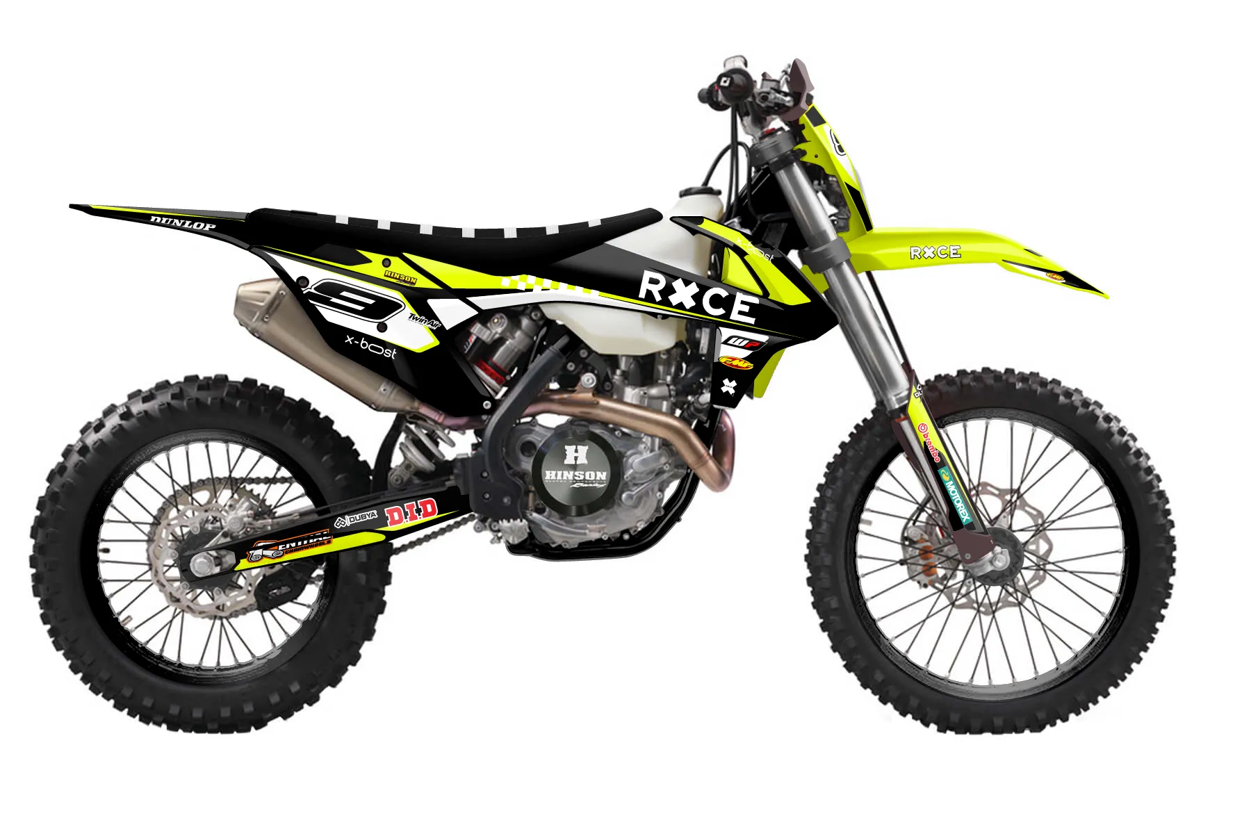 «Lucent Neon» — готовый комплект графики серии Flow для KTM Enduro Graphic Kit KTM EXC-F 500 2017. В комплекте: графика на бак и боковые облицовки, крылья (переднее и заднее), передний щиток, номерные таблички, защита вилки. Материал: ПВХ-винил 80 мкр с холодной ламинацией 300 мкр, общая толщина 380 мкр; покрытие глянцевое или матовое на выбор. Устойчив к UV-излучению, воде, бензину и мойке высокого давления. Клей акриловый на сольвентной основе — постоянный, для гибких пластиков. На простых поверхностях монтируется без нагрева; для сложных изгибов рекомендуем фен. Этот пресет можно заказать как есть или взять за основу в конструкторе: поменять цвета, добавить стартовый номер и свой бренд. Производство — 3–5 рабочих дней, доставка по России СДЭКом или Почтой, по СНГ — курьерскими службами.