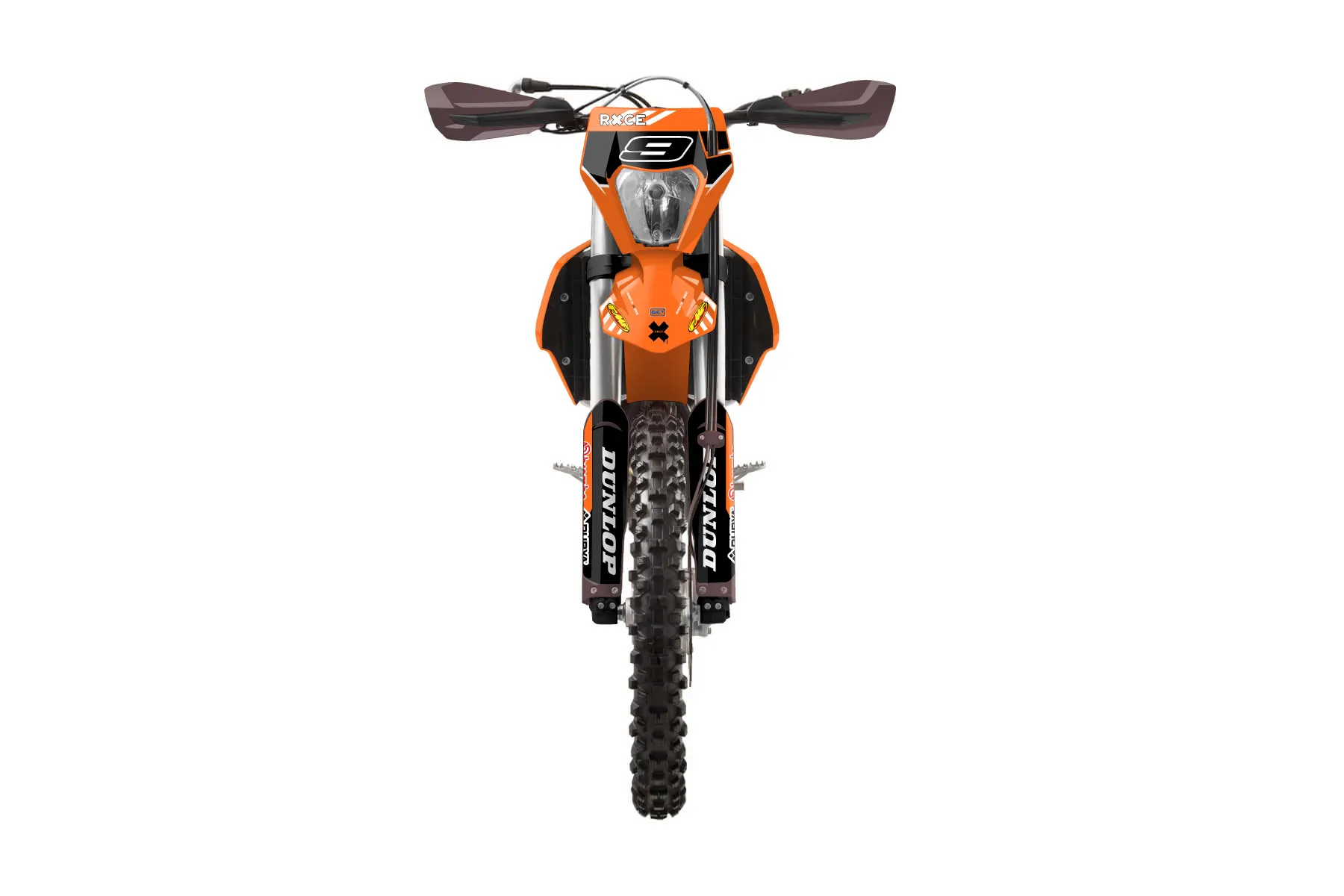 «Express» — готовый комплект графики серии Maverick для KTM Enduro Graphic Kit KTM EXC-F 500 2017. В комплекте: графика на бак и боковые облицовки, крылья (переднее и заднее), передний щиток, номерные таблички, защита вилки. Материал: ПВХ-винил 80 мкр с холодной ламинацией 300 мкр, общая толщина 380 мкр; покрытие глянцевое или матовое на выбор. Устойчив к UV-излучению, воде, бензину и мойке высокого давления. Клей акриловый на сольвентной основе — постоянный, для гибких пластиков. На простых поверхностях монтируется без нагрева; для сложных изгибов рекомендуем фен. Этот пресет можно заказать как есть или взять за основу в конструкторе: поменять цвета, добавить стартовый номер и свой бренд. Производство — 3–5 рабочих дней, доставка по России СДЭКом или Почтой, по СНГ — курьерскими службами.