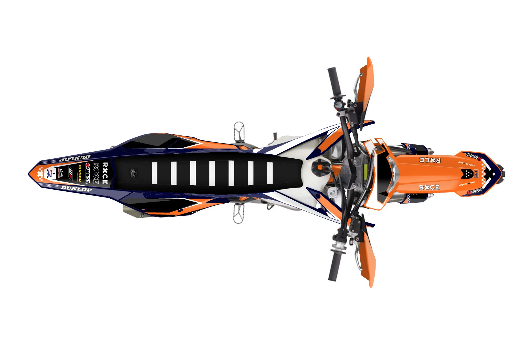«Rage» — готовый комплект графики серии Staple для KTM Enduro Graphic Kit KTM EXC-F 500 2017. В комплекте: графика на бак и боковые облицовки, крылья (переднее и заднее), передний щиток, номерные таблички, защита вилки. Материал: ПВХ-винил 80 мкр с холодной ламинацией 300 мкр, общая толщина 380 мкр; покрытие глянцевое или матовое на выбор. Устойчив к UV-излучению, воде, бензину и мойке высокого давления. Клей акриловый на сольвентной основе — постоянный, для гибких пластиков. На простых поверхностях монтируется без нагрева; для сложных изгибов рекомендуем фен. Этот пресет можно заказать как есть или взять за основу в конструкторе: поменять цвета, добавить стартовый номер и свой бренд. Производство — 3–5 рабочих дней, доставка по России СДЭКом или Почтой, по СНГ — курьерскими службами.