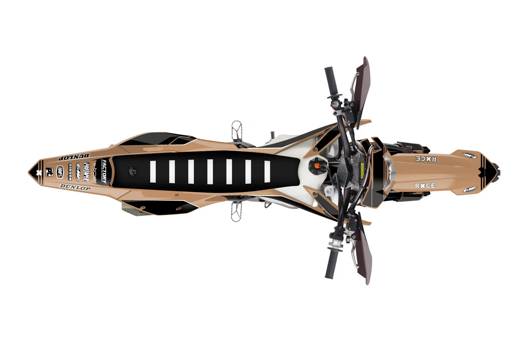 «Entire» — готовый комплект графики серии Untucked для KTM Enduro Graphic Kit KTM EXC-F 500 2017. В комплекте: графика на бак и боковые облицовки, крылья (переднее и заднее), передний щиток, номерные таблички, защита вилки. Материал: ПВХ-винил 80 мкр с холодной ламинацией 300 мкр, общая толщина 380 мкр; покрытие глянцевое или матовое на выбор. Устойчив к UV-излучению, воде, бензину и мойке высокого давления. Клей акриловый на сольвентной основе — постоянный, для гибких пластиков. На простых поверхностях монтируется без нагрева; для сложных изгибов рекомендуем фен. Этот пресет можно заказать как есть или взять за основу в конструкторе: поменять цвета, добавить стартовый номер и свой бренд. Производство — 3–5 рабочих дней, доставка по России СДЭКом или Почтой, по СНГ — курьерскими службами.