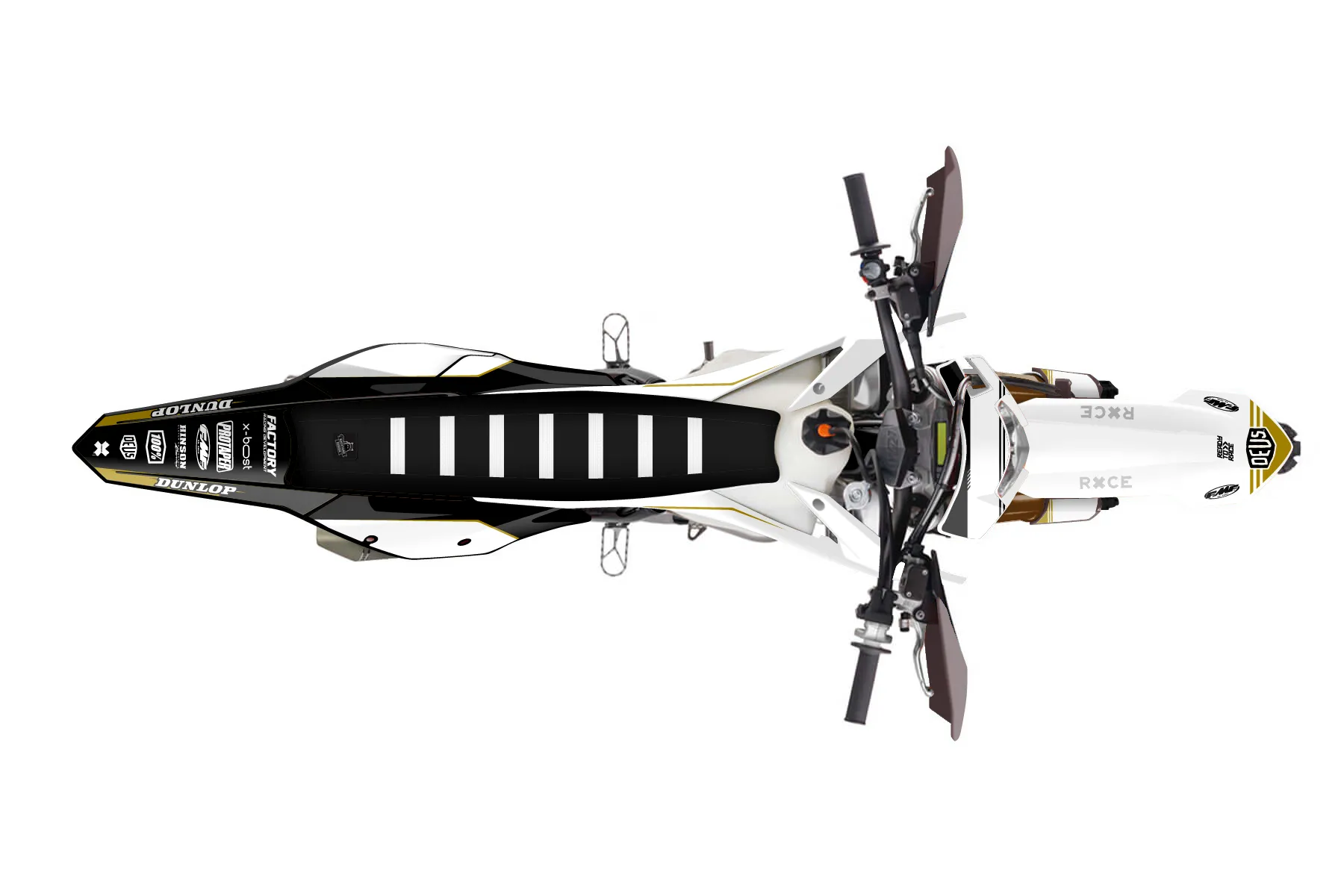 «Sharp» — готовый комплект графики серии Untucked для KTM Enduro Graphic Kit KTM EXC-F 500 2017. В комплекте: графика на бак и боковые облицовки, крылья (переднее и заднее), передний щиток, номерные таблички, защита вилки. Материал: ПВХ-винил 80 мкр с холодной ламинацией 300 мкр, общая толщина 380 мкр; покрытие глянцевое или матовое на выбор. Устойчив к UV-излучению, воде, бензину и мойке высокого давления. Клей акриловый на сольвентной основе — постоянный, для гибких пластиков. На простых поверхностях монтируется без нагрева; для сложных изгибов рекомендуем фен. Этот пресет можно заказать как есть или взять за основу в конструкторе: поменять цвета, добавить стартовый номер и свой бренд. Производство — 3–5 рабочих дней, доставка по России СДЭКом или Почтой, по СНГ — курьерскими службами.