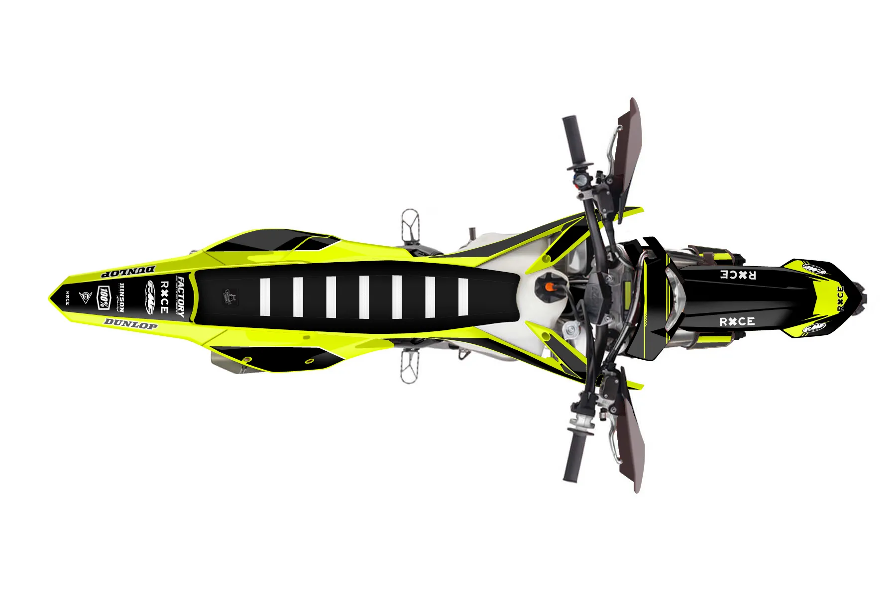 «Style Neon» — готовый комплект графики серии Untucked для KTM Enduro Graphic Kit KTM EXC-F 500 2017. В комплекте: графика на бак и боковые облицовки, крылья (переднее и заднее), передний щиток, номерные таблички, защита вилки. Материал: ПВХ-винил 80 мкр с холодной ламинацией 300 мкр, общая толщина 380 мкр; покрытие глянцевое или матовое на выбор. Устойчив к UV-излучению, воде, бензину и мойке высокого давления. Клей акриловый на сольвентной основе — постоянный, для гибких пластиков. На простых поверхностях монтируется без нагрева; для сложных изгибов рекомендуем фен. Этот пресет можно заказать как есть или взять за основу в конструкторе: поменять цвета, добавить стартовый номер и свой бренд. Производство — 3–5 рабочих дней, доставка по России СДЭКом или Почтой, по СНГ — курьерскими службами.