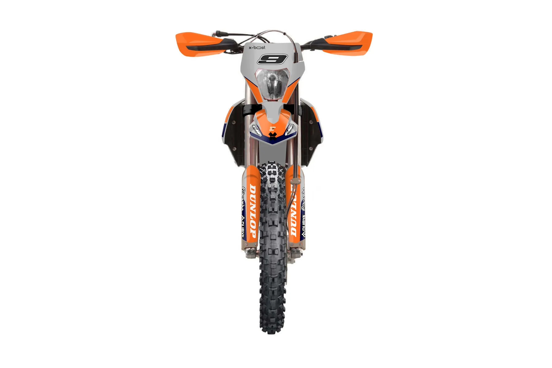 «Ride» — готовый комплект графики серии Flow для KTM Enduro Graphic Kit KTM EXC-F 500 2020. В комплекте: графика на бак и боковые облицовки, крылья (переднее и заднее), передний щиток, номерные таблички, защита вилки. Материал: ПВХ-винил 80 мкр с холодной ламинацией 300 мкр, общая толщина 380 мкр; покрытие глянцевое или матовое на выбор. Устойчив к UV-излучению, воде, бензину и мойке высокого давления. Клей акриловый на сольвентной основе — постоянный, для гибких пластиков. На простых поверхностях монтируется без нагрева; для сложных изгибов рекомендуем фен. Этот пресет можно заказать как есть или взять за основу в конструкторе: поменять цвета, добавить стартовый номер и свой бренд. Производство — 3–5 рабочих дней, доставка по России СДЭКом или Почтой, по СНГ — курьерскими службами.
