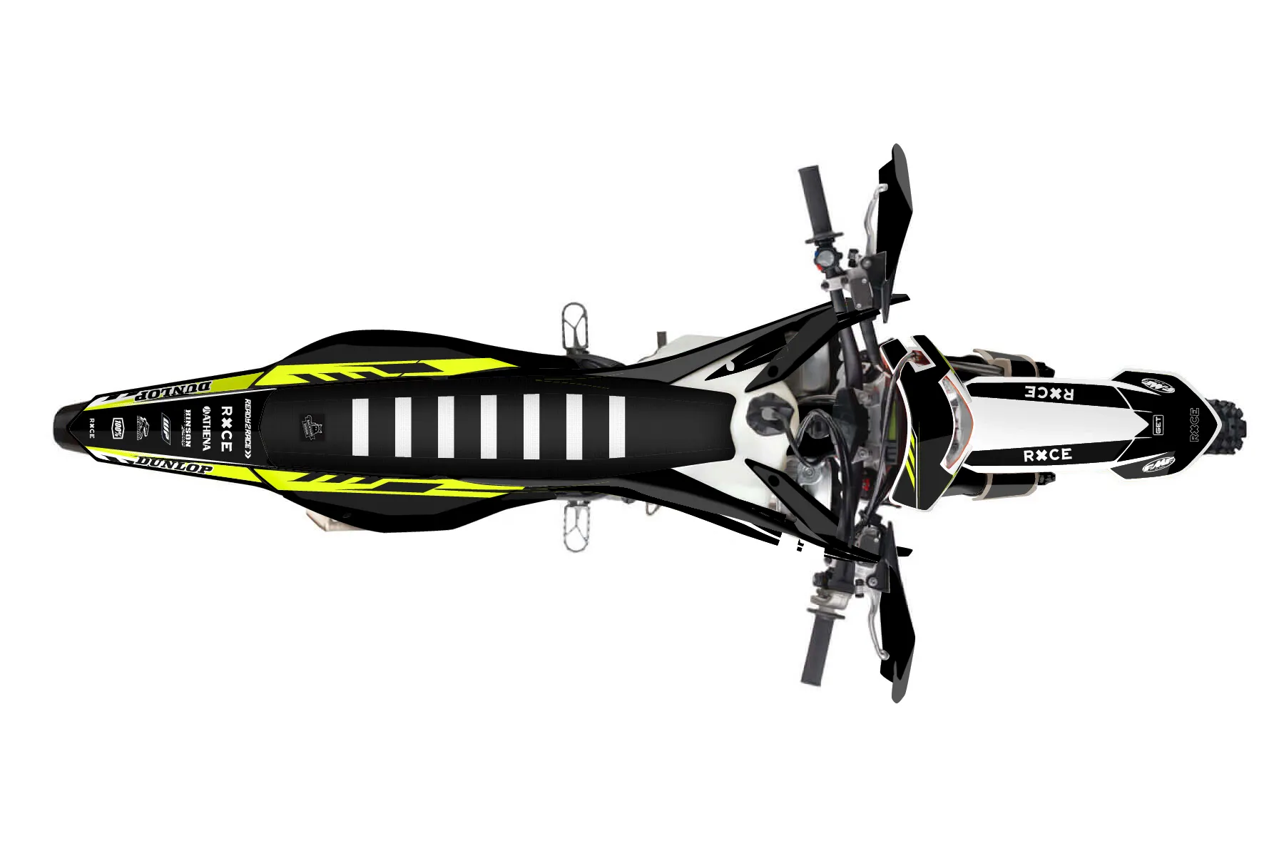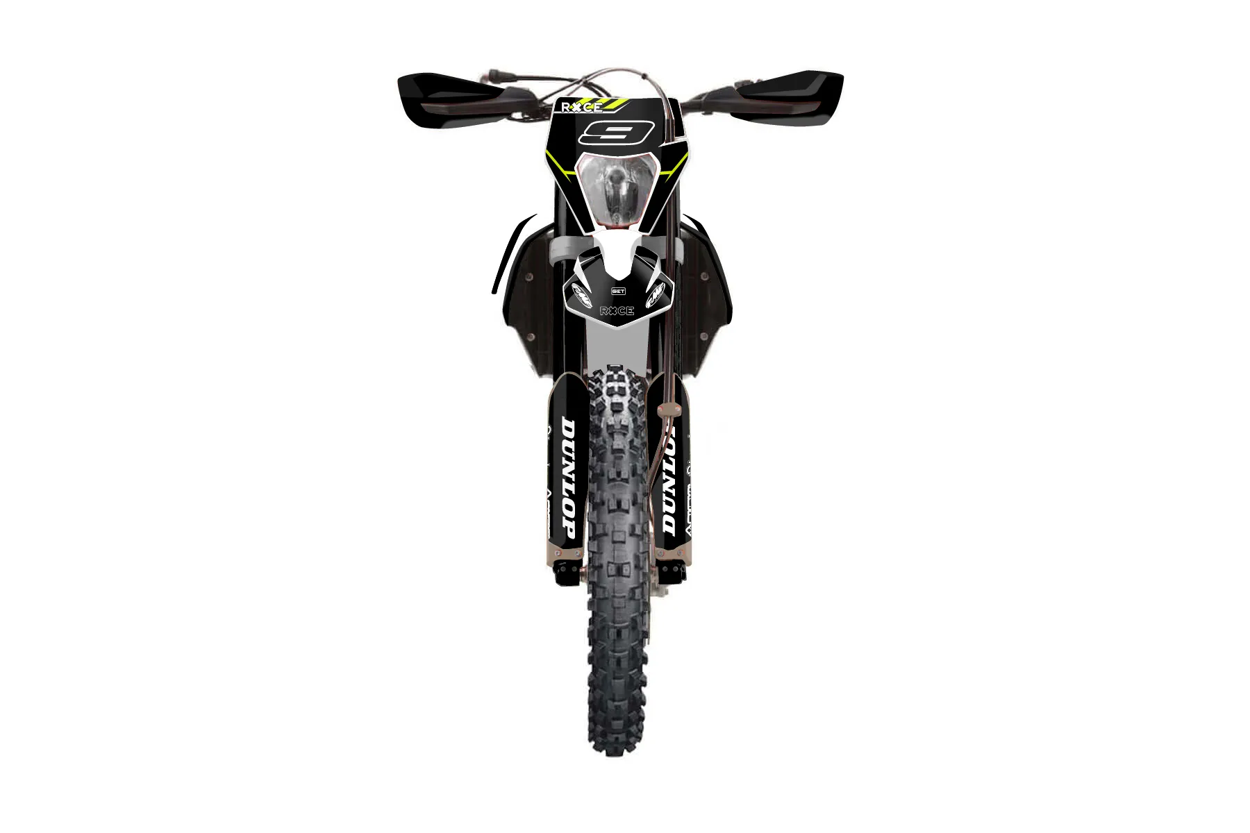 «Daze Fluo» — готовый комплект графики серии Maverick для KTM Enduro Graphic Kit KTM EXC-F 500 2020. В комплекте: графика на бак и боковые облицовки, крылья (переднее и заднее), передний щиток, номерные таблички, защита вилки. Материал: ПВХ-винил 80 мкр с холодной ламинацией 300 мкр, общая толщина 380 мкр; покрытие глянцевое или матовое на выбор. Устойчив к UV-излучению, воде, бензину и мойке высокого давления. Клей акриловый на сольвентной основе — постоянный, для гибких пластиков. На простых поверхностях монтируется без нагрева; для сложных изгибов рекомендуем фен. Этот пресет можно заказать как есть или взять за основу в конструкторе: поменять цвета, добавить стартовый номер и свой бренд. Производство — 3–5 рабочих дней, доставка по России СДЭКом или Почтой, по СНГ — курьерскими службами.