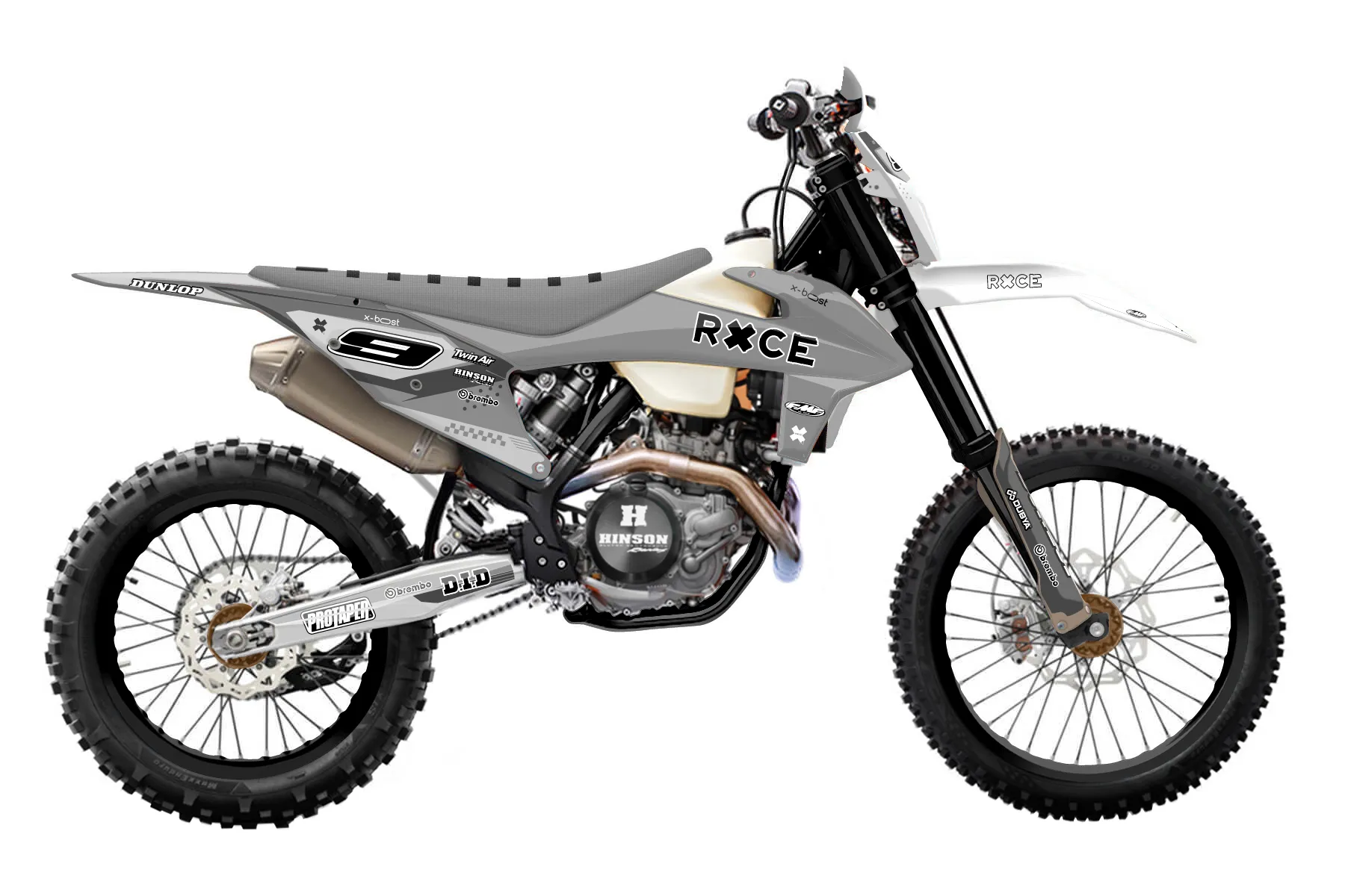 «Drizzle» — готовый комплект графики серии Staple для KTM Enduro Graphic Kit KTM EXC-F 500 2020. В комплекте: графика на бак и боковые облицовки, крылья (переднее и заднее), передний щиток, номерные таблички, защита вилки. Материал: ПВХ-винил 80 мкр с холодной ламинацией 300 мкр, общая толщина 380 мкр; покрытие глянцевое или матовое на выбор. Устойчив к UV-излучению, воде, бензину и мойке высокого давления. Клей акриловый на сольвентной основе — постоянный, для гибких пластиков. На простых поверхностях монтируется без нагрева; для сложных изгибов рекомендуем фен. Этот пресет можно заказать как есть или взять за основу в конструкторе: поменять цвета, добавить стартовый номер и свой бренд. Производство — 3–5 рабочих дней, доставка по России СДЭКом или Почтой, по СНГ — курьерскими службами.