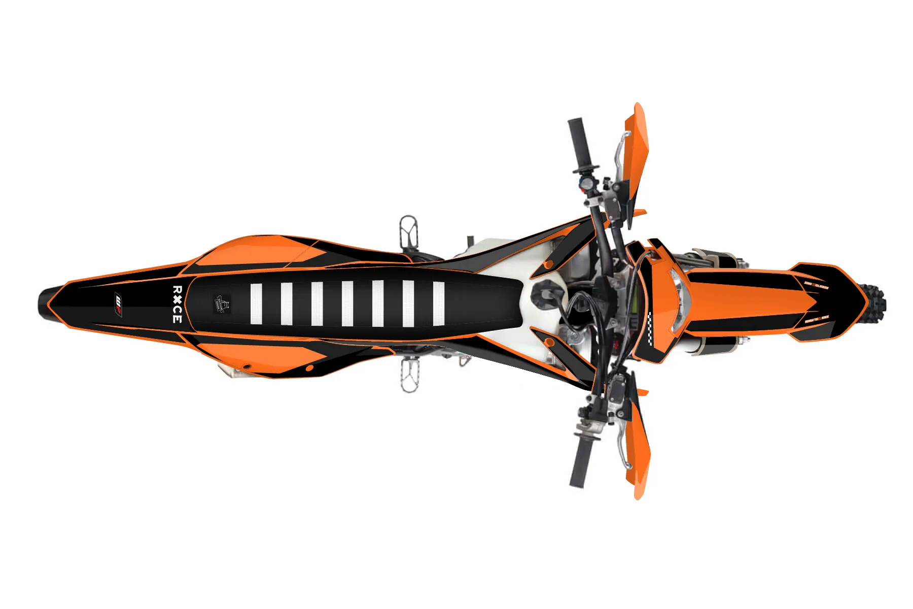 «KTM500» — готовый комплект графики серии Staple для KTM Enduro Graphic Kit KTM EXC-F 500 2020. В комплекте: графика на бак и боковые облицовки, крылья (переднее и заднее), передний щиток, номерные таблички, защита вилки. Материал: ПВХ-винил 80 мкр с холодной ламинацией 300 мкр, общая толщина 380 мкр; покрытие глянцевое или матовое на выбор. Устойчив к UV-излучению, воде, бензину и мойке высокого давления. Клей акриловый на сольвентной основе — постоянный, для гибких пластиков. На простых поверхностях монтируется без нагрева; для сложных изгибов рекомендуем фен. Этот пресет можно заказать как есть или взять за основу в конструкторе: поменять цвета, добавить стартовый номер и свой бренд. Производство — 3–5 рабочих дней, доставка по России СДЭКом или Почтой, по СНГ — курьерскими службами.