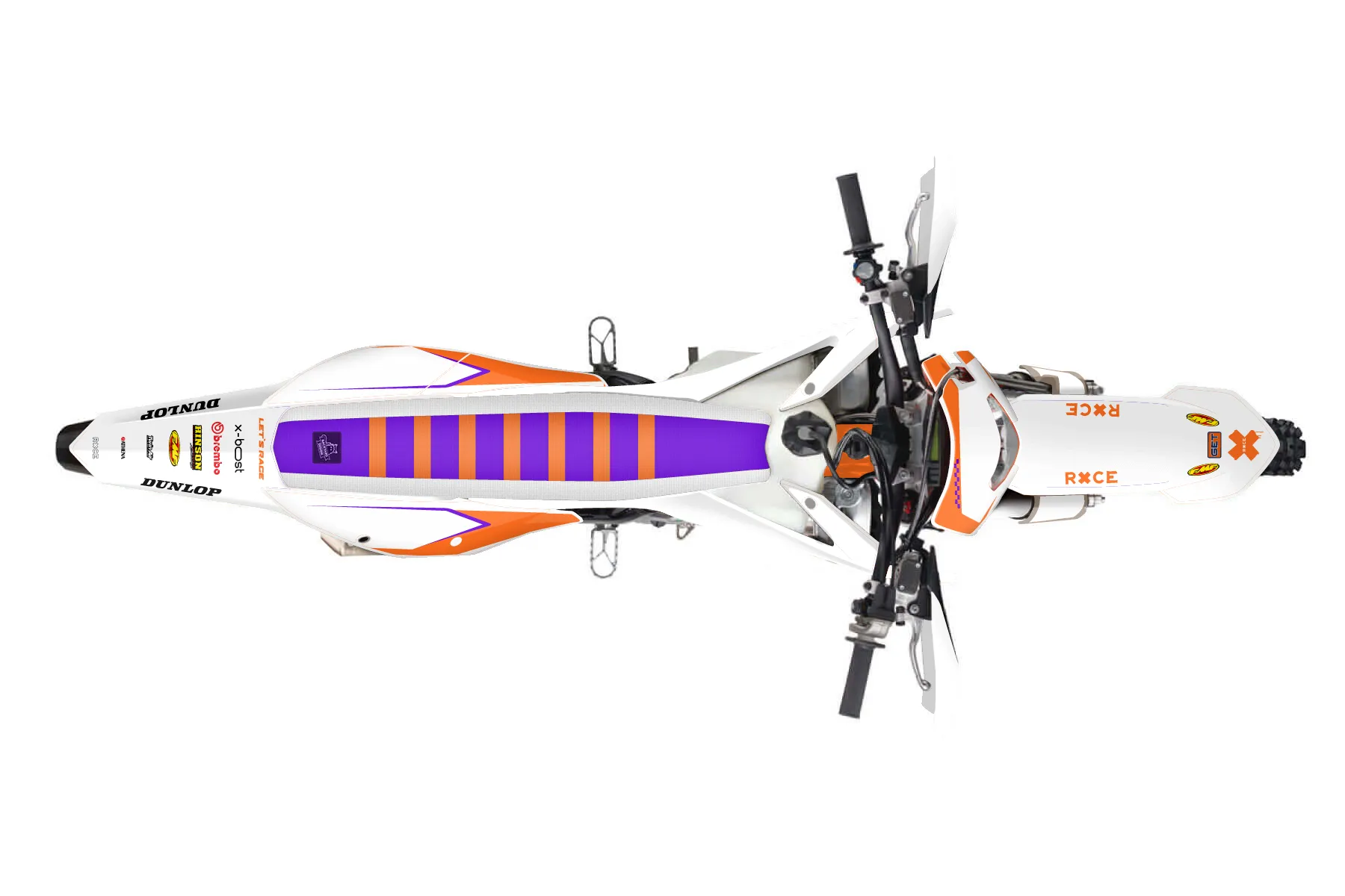 «Retro» — готовый комплект графики серии Staple для KTM Enduro Graphic Kit KTM EXC-F 500 2020. В комплекте: графика на бак и боковые облицовки, крылья (переднее и заднее), передний щиток, номерные таблички, защита вилки. Материал: ПВХ-винил 80 мкр с холодной ламинацией 300 мкр, общая толщина 380 мкр; покрытие глянцевое или матовое на выбор. Устойчив к UV-излучению, воде, бензину и мойке высокого давления. Клей акриловый на сольвентной основе — постоянный, для гибких пластиков. На простых поверхностях монтируется без нагрева; для сложных изгибов рекомендуем фен. Этот пресет можно заказать как есть или взять за основу в конструкторе: поменять цвета, добавить стартовый номер и свой бренд. Производство — 3–5 рабочих дней, доставка по России СДЭКом или Почтой, по СНГ — курьерскими службами.