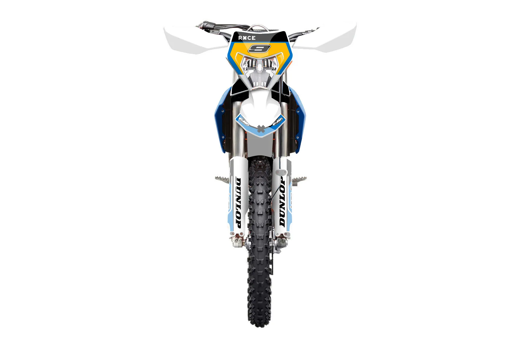 «All-Star» — готовый комплект графики серии Flow для KTM Enduro Graphic Kit KTM EXC-F 500 2024. В комплекте: графика на бак и боковые облицовки, крылья (переднее и заднее), передний щиток, номерные таблички, защита вилки. Материал: ПВХ-винил 80 мкр с холодной ламинацией 300 мкр, общая толщина 380 мкр; покрытие глянцевое или матовое на выбор. Устойчив к UV-излучению, воде, бензину и мойке высокого давления. Клей акриловый на сольвентной основе — постоянный, для гибких пластиков. На простых поверхностях монтируется без нагрева; для сложных изгибов рекомендуем фен. Этот пресет можно заказать как есть или взять за основу в конструкторе: поменять цвета, добавить стартовый номер и свой бренд. Производство — 3–5 рабочих дней, доставка по России СДЭКом или Почтой, по СНГ — курьерскими службами.
