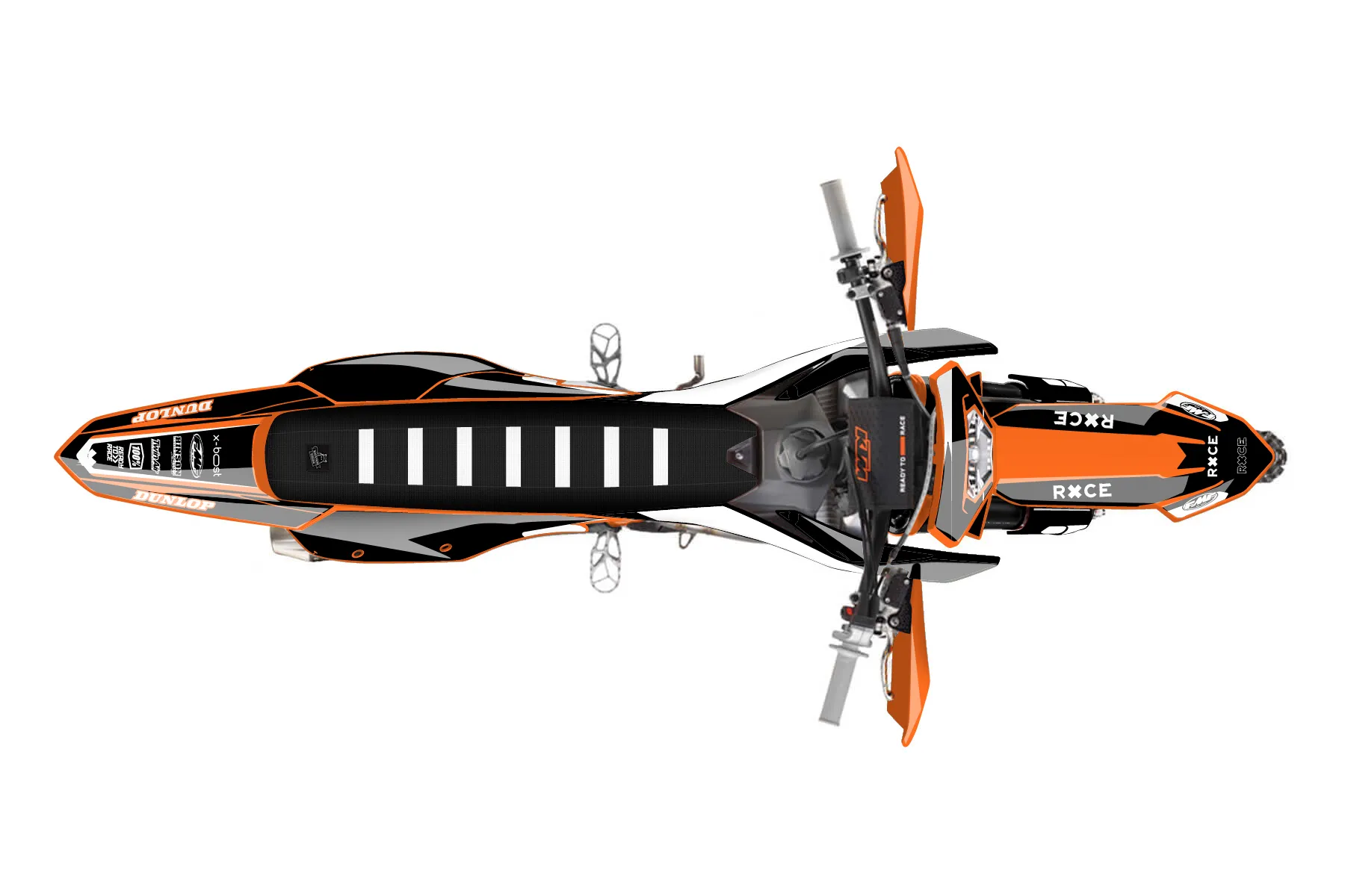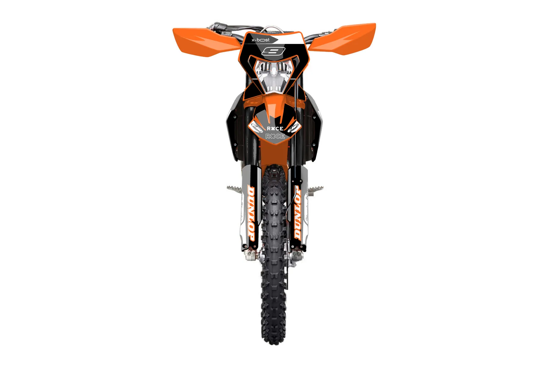 «Race» — готовый комплект графики серии Flow для KTM Enduro Graphic Kit KTM EXC-F 500 2024. В комплекте: графика на бак и боковые облицовки, крылья (переднее и заднее), передний щиток, номерные таблички, защита вилки. Материал: ПВХ-винил 80 мкр с холодной ламинацией 300 мкр, общая толщина 380 мкр; покрытие глянцевое или матовое на выбор. Устойчив к UV-излучению, воде, бензину и мойке высокого давления. Клей акриловый на сольвентной основе — постоянный, для гибких пластиков. На простых поверхностях монтируется без нагрева; для сложных изгибов рекомендуем фен. Этот пресет можно заказать как есть или взять за основу в конструкторе: поменять цвета, добавить стартовый номер и свой бренд. Производство — 3–5 рабочих дней, доставка по России СДЭКом или Почтой, по СНГ — курьерскими службами.