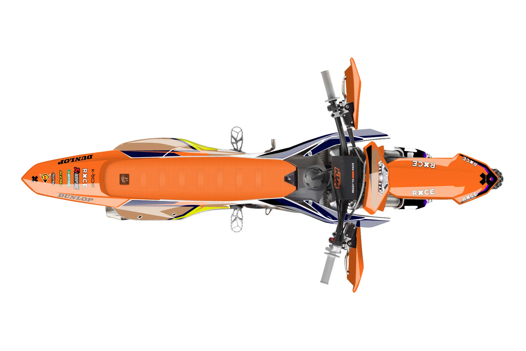 «Blue/Brown» — готовый комплект графики серии Fusion для KTM Enduro Graphic Kit KTM EXC-F 500 2024. В комплекте: графика на бак и боковые облицовки, крылья (переднее и заднее), передний щиток, номерные таблички, защита вилки. Материал: ПВХ-винил 80 мкр с холодной ламинацией 300 мкр, общая толщина 380 мкр; покрытие глянцевое или матовое на выбор. Устойчив к UV-излучению, воде, бензину и мойке высокого давления. Клей акриловый на сольвентной основе — постоянный, для гибких пластиков. На простых поверхностях монтируется без нагрева; для сложных изгибов рекомендуем фен. Этот пресет можно заказать как есть или взять за основу в конструкторе: поменять цвета, добавить стартовый номер и свой бренд. Производство — 3–5 рабочих дней, доставка по России СДЭКом или Почтой, по СНГ — курьерскими службами.