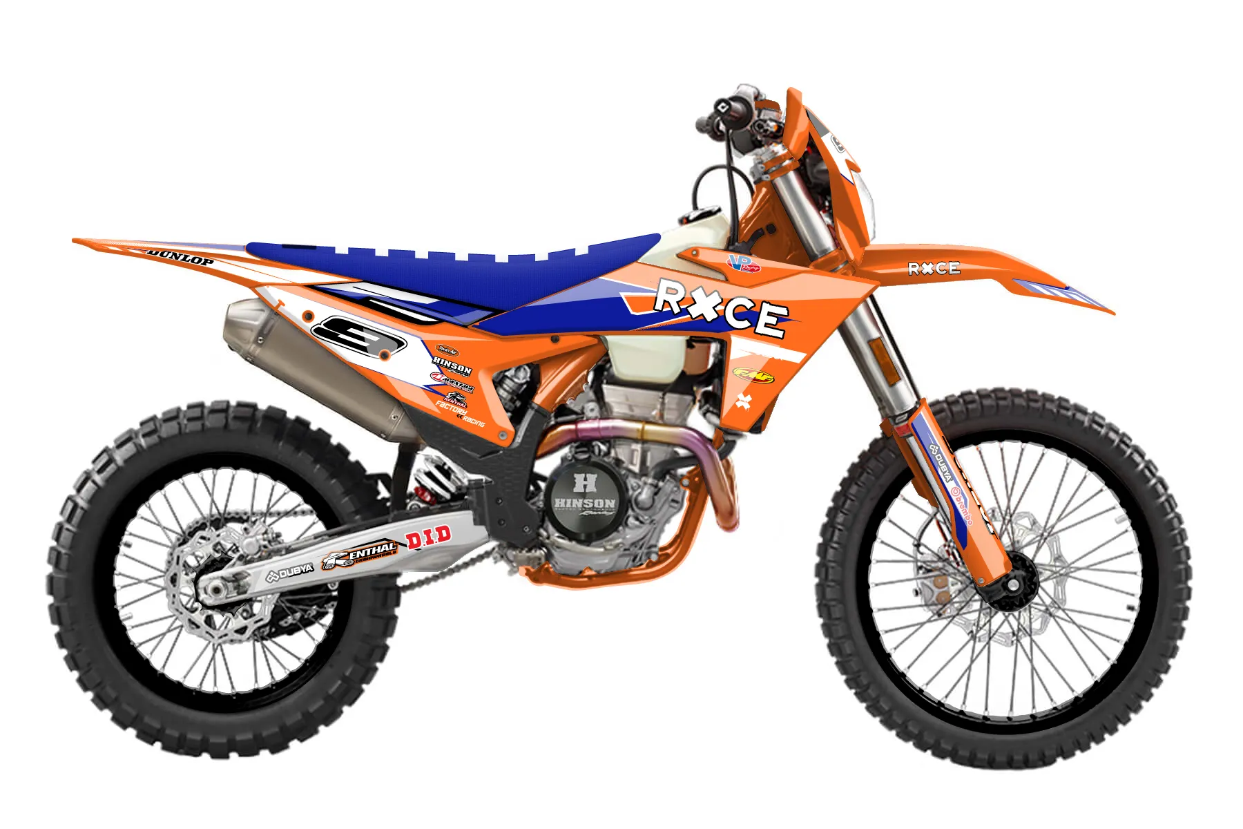 «Showtime» — готовый комплект графики серии Maverick для KTM Enduro Graphic Kit KTM EXC-F 500 2024. В комплекте: графика на бак и боковые облицовки, крылья (переднее и заднее), передний щиток, номерные таблички, защита вилки. Материал: ПВХ-винил 80 мкр с холодной ламинацией 300 мкр, общая толщина 380 мкр; покрытие глянцевое или матовое на выбор. Устойчив к UV-излучению, воде, бензину и мойке высокого давления. Клей акриловый на сольвентной основе — постоянный, для гибких пластиков. На простых поверхностях монтируется без нагрева; для сложных изгибов рекомендуем фен. Этот пресет можно заказать как есть или взять за основу в конструкторе: поменять цвета, добавить стартовый номер и свой бренд. Производство — 3–5 рабочих дней, доставка по России СДЭКом или Почтой, по СНГ — курьерскими службами.