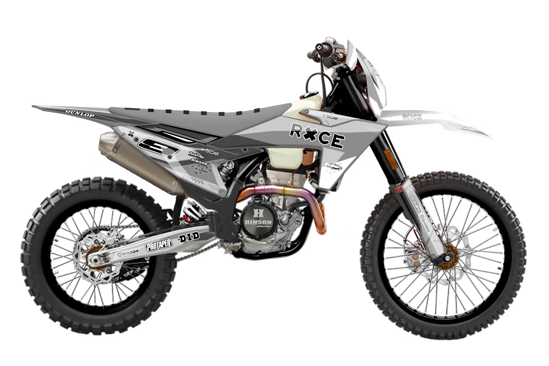 «Drizzle» — готовый комплект графики серии Staple для KTM Enduro Graphic Kit KTM EXC-F 500 2024. В комплекте: графика на бак и боковые облицовки, крылья (переднее и заднее), передний щиток, номерные таблички, защита вилки. Материал: ПВХ-винил 80 мкр с холодной ламинацией 300 мкр, общая толщина 380 мкр; покрытие глянцевое или матовое на выбор. Устойчив к UV-излучению, воде, бензину и мойке высокого давления. Клей акриловый на сольвентной основе — постоянный, для гибких пластиков. На простых поверхностях монтируется без нагрева; для сложных изгибов рекомендуем фен. Этот пресет можно заказать как есть или взять за основу в конструкторе: поменять цвета, добавить стартовый номер и свой бренд. Производство — 3–5 рабочих дней, доставка по России СДЭКом или Почтой, по СНГ — курьерскими службами.