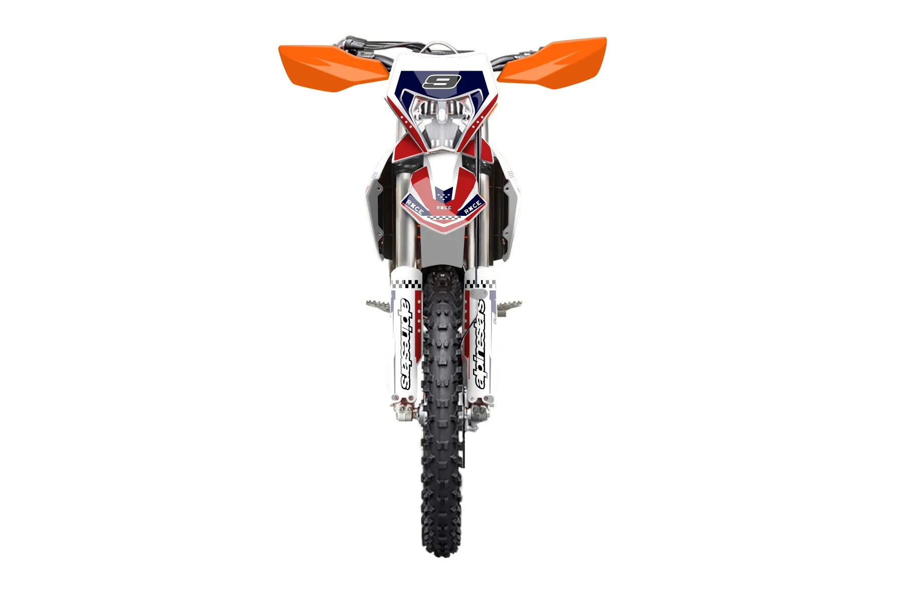 «RWB Updates» — готовый комплект графики серии Staple для KTM Enduro Graphic Kit KTM EXC-F 500 2024. В комплекте: графика на бак и боковые облицовки, крылья (переднее и заднее), передний щиток, номерные таблички, защита вилки. Материал: ПВХ-винил 80 мкр с холодной ламинацией 300 мкр, общая толщина 380 мкр; покрытие глянцевое или матовое на выбор. Устойчив к UV-излучению, воде, бензину и мойке высокого давления. Клей акриловый на сольвентной основе — постоянный, для гибких пластиков. На простых поверхностях монтируется без нагрева; для сложных изгибов рекомендуем фен. Этот пресет можно заказать как есть или взять за основу в конструкторе: поменять цвета, добавить стартовый номер и свой бренд. Производство — 3–5 рабочих дней, доставка по России СДЭКом или Почтой, по СНГ — курьерскими службами.