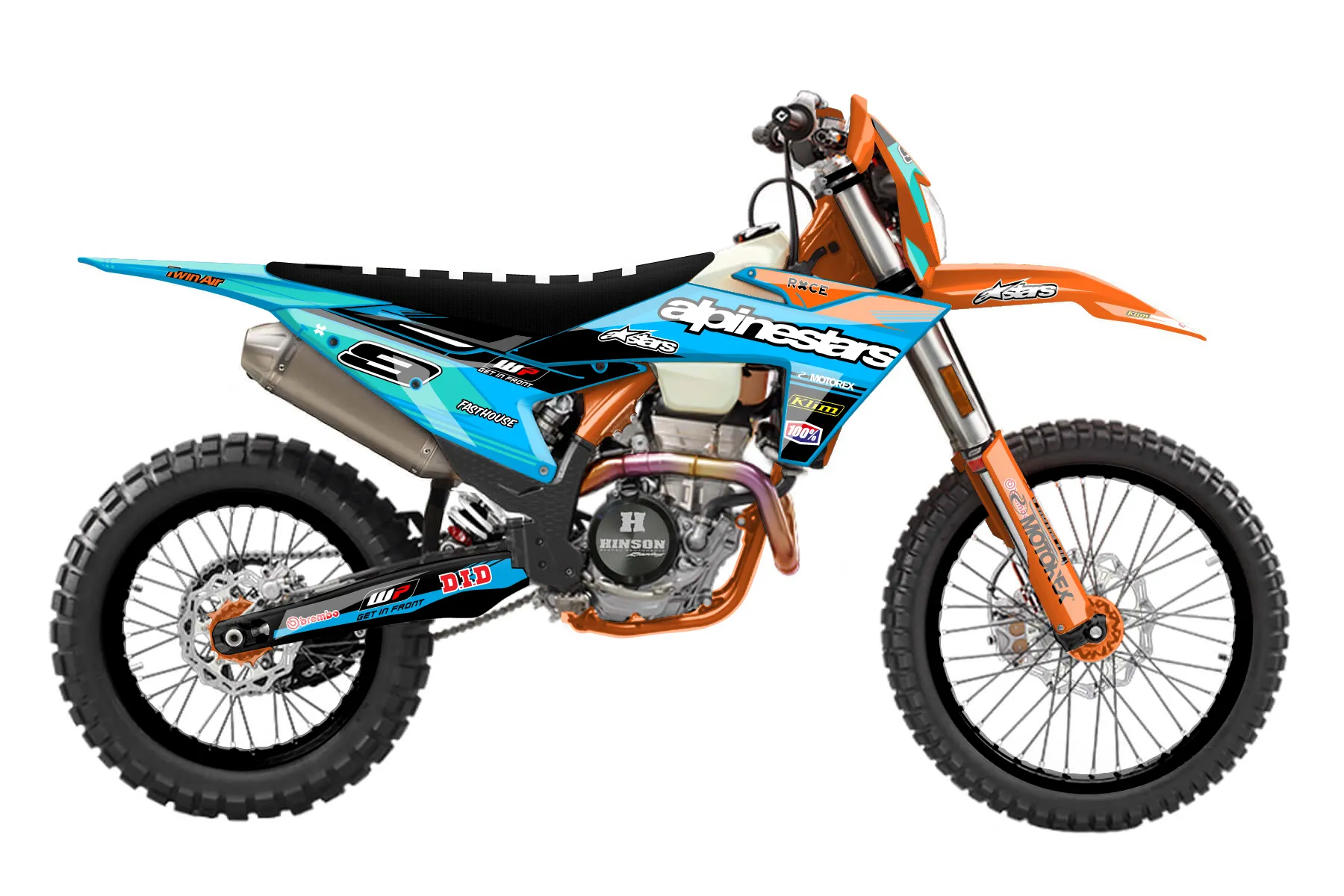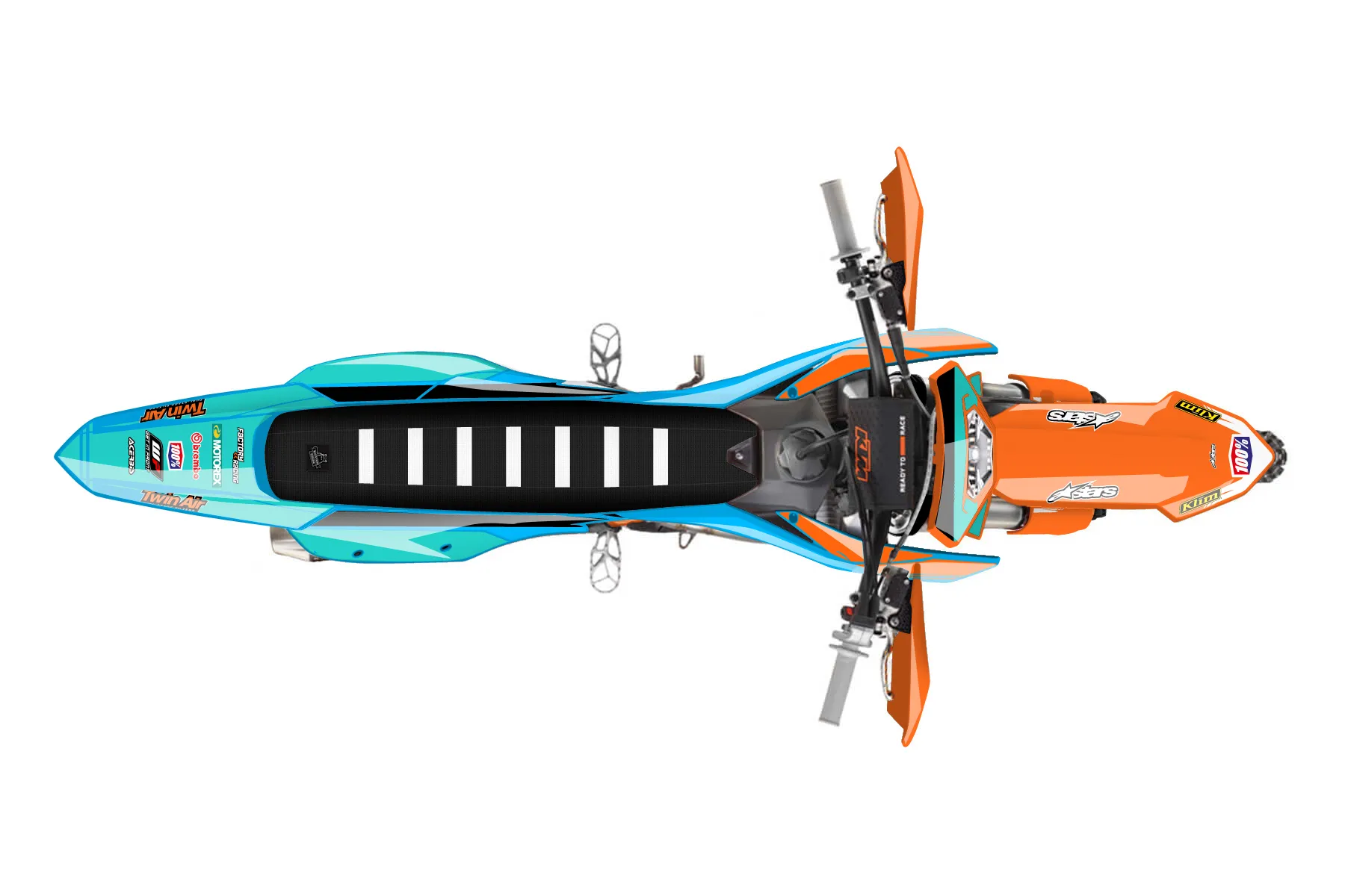 «CustomDesign» — готовый комплект графики серии Untucked для KTM Enduro Graphic Kit KTM EXC-F 500 2024. В комплекте: графика на бак и боковые облицовки, крылья (переднее и заднее), передний щиток, номерные таблички, защита вилки. Материал: ПВХ-винил 80 мкр с холодной ламинацией 300 мкр, общая толщина 380 мкр; покрытие глянцевое или матовое на выбор. Устойчив к UV-излучению, воде, бензину и мойке высокого давления. Клей акриловый на сольвентной основе — постоянный, для гибких пластиков. На простых поверхностях монтируется без нагрева; для сложных изгибов рекомендуем фен. Этот пресет можно заказать как есть или взять за основу в конструкторе: поменять цвета, добавить стартовый номер и свой бренд. Производство — 3–5 рабочих дней, доставка по России СДЭКом или Почтой, по СНГ — курьерскими службами.