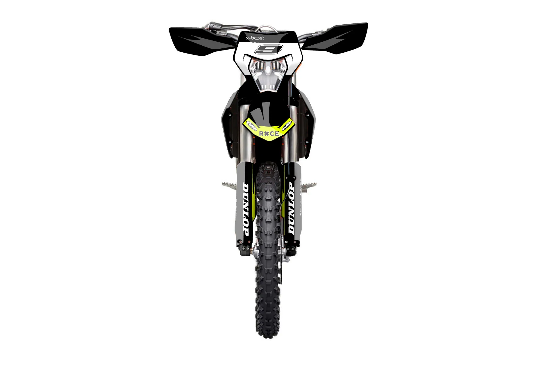 «Vivid Neon» — готовый комплект графики серии Untucked для KTM Enduro Graphic Kit KTM EXC-F 500 2024. В комплекте: графика на бак и боковые облицовки, крылья (переднее и заднее), передний щиток, номерные таблички, защита вилки. Материал: ПВХ-винил 80 мкр с холодной ламинацией 300 мкр, общая толщина 380 мкр; покрытие глянцевое или матовое на выбор. Устойчив к UV-излучению, воде, бензину и мойке высокого давления. Клей акриловый на сольвентной основе — постоянный, для гибких пластиков. На простых поверхностях монтируется без нагрева; для сложных изгибов рекомендуем фен. Этот пресет можно заказать как есть или взять за основу в конструкторе: поменять цвета, добавить стартовый номер и свой бренд. Производство — 3–5 рабочих дней, доставка по России СДЭКом или Почтой, по СНГ — курьерскими службами.