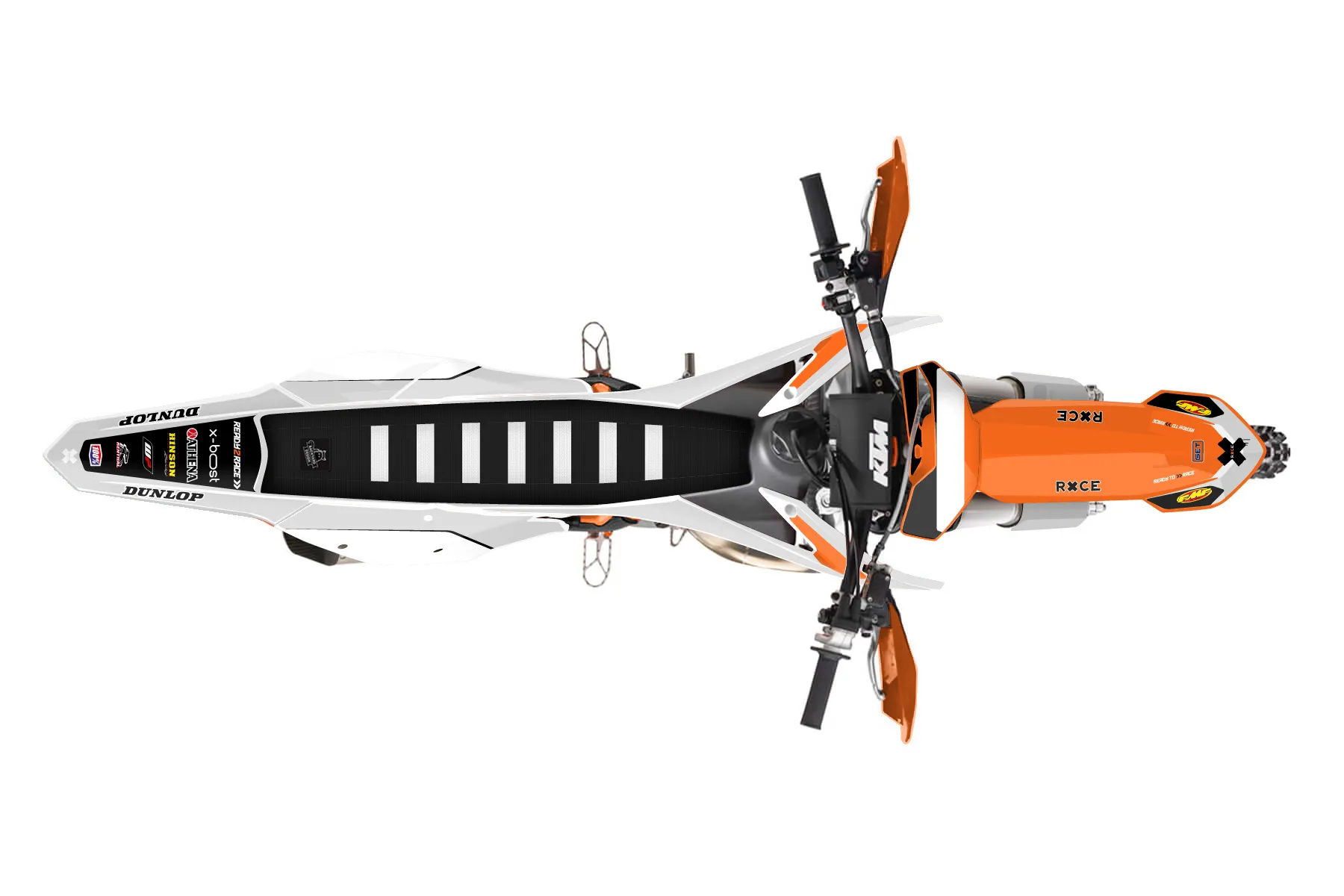 «Answer» — готовый комплект графики серии Flow для KTM Offroad Graphic Kit KTM XC 125 2016. В комплекте: графика на бак и боковые облицовки, крылья (переднее и заднее), передний щиток, номерные таблички, защита вилки. Материал: ПВХ-винил 80 мкр с холодной ламинацией 300 мкр, общая толщина 380 мкр; покрытие глянцевое или матовое на выбор. Устойчив к UV-излучению, воде, бензину и мойке высокого давления. Клей акриловый на сольвентной основе — постоянный, для гибких пластиков. На простых поверхностях монтируется без нагрева; для сложных изгибов рекомендуем фен. Этот пресет можно заказать как есть или взять за основу в конструкторе: поменять цвета, добавить стартовый номер и свой бренд. Производство — 3–5 рабочих дней, доставка по России СДЭКом или Почтой, по СНГ — курьерскими службами.