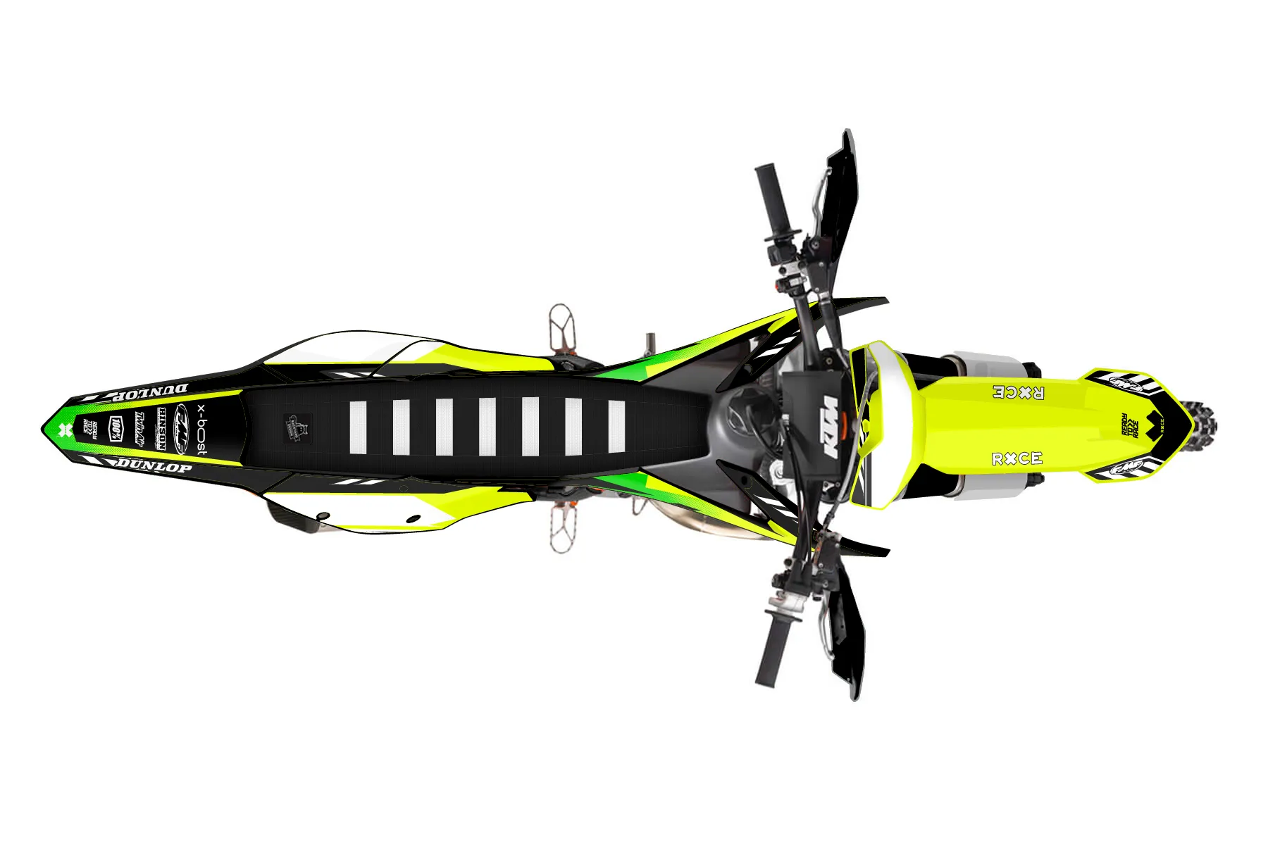 «Volt Neon» — готовый комплект графики серии Maverick для KTM Offroad Graphic Kit KTM XC 125 2016. В комплекте: графика на бак и боковые облицовки, крылья (переднее и заднее), передний щиток, номерные таблички, защита вилки. Материал: ПВХ-винил 80 мкр с холодной ламинацией 300 мкр, общая толщина 380 мкр; покрытие глянцевое или матовое на выбор. Устойчив к UV-излучению, воде, бензину и мойке высокого давления. Клей акриловый на сольвентной основе — постоянный, для гибких пластиков. На простых поверхностях монтируется без нагрева; для сложных изгибов рекомендуем фен. Этот пресет можно заказать как есть или взять за основу в конструкторе: поменять цвета, добавить стартовый номер и свой бренд. Производство — 3–5 рабочих дней, доставка по России СДЭКом или Почтой, по СНГ — курьерскими службами.