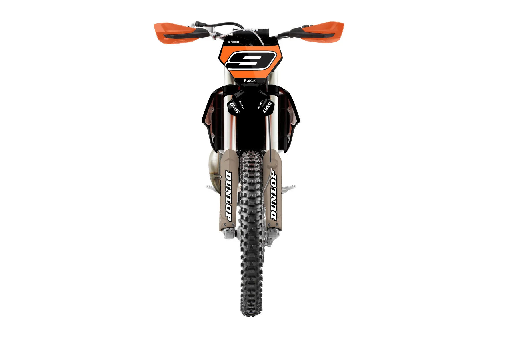 «Beyond» — готовый комплект графики серии Flow для KTM Offroad Graphic Kit KTM XC 125 2019. В комплекте: графика на бак и боковые облицовки, крылья (переднее и заднее), передний щиток, номерные таблички, защита вилки. Материал: ПВХ-винил 80 мкр с холодной ламинацией 300 мкр, общая толщина 380 мкр; покрытие глянцевое или матовое на выбор. Устойчив к UV-излучению, воде, бензину и мойке высокого давления. Клей акриловый на сольвентной основе — постоянный, для гибких пластиков. На простых поверхностях монтируется без нагрева; для сложных изгибов рекомендуем фен. Этот пресет можно заказать как есть или взять за основу в конструкторе: поменять цвета, добавить стартовый номер и свой бренд. Производство — 3–5 рабочих дней, доставка по России СДЭКом или Почтой, по СНГ — курьерскими службами.