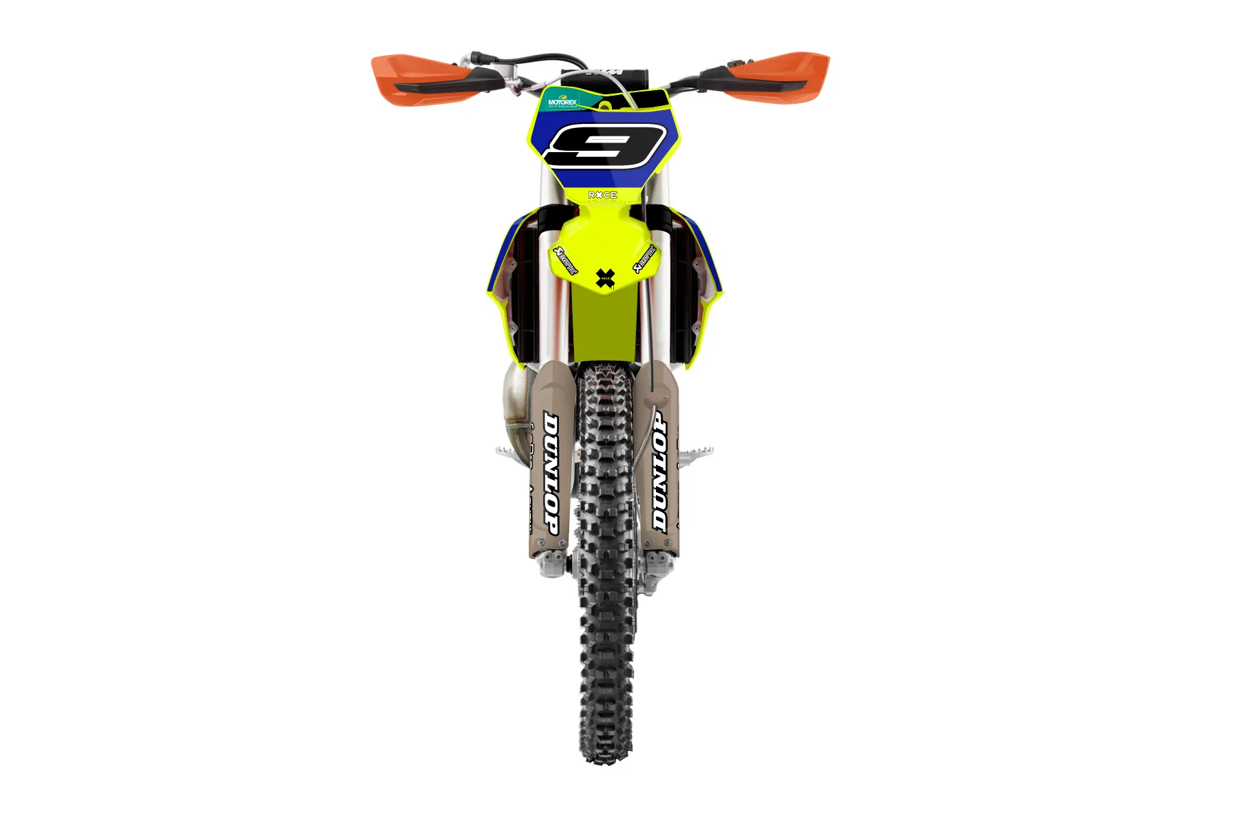 «Brilliant Neon» — готовый комплект графики серии Flow для KTM Offroad Graphic Kit KTM XC 125 2019. В комплекте: графика на бак и боковые облицовки, крылья (переднее и заднее), передний щиток, номерные таблички, защита вилки. Материал: ПВХ-винил 80 мкр с холодной ламинацией 300 мкр, общая толщина 380 мкр; покрытие глянцевое или матовое на выбор. Устойчив к UV-излучению, воде, бензину и мойке высокого давления. Клей акриловый на сольвентной основе — постоянный, для гибких пластиков. На простых поверхностях монтируется без нагрева; для сложных изгибов рекомендуем фен. Этот пресет можно заказать как есть или взять за основу в конструкторе: поменять цвета, добавить стартовый номер и свой бренд. Производство — 3–5 рабочих дней, доставка по России СДЭКом или Почтой, по СНГ — курьерскими службами.