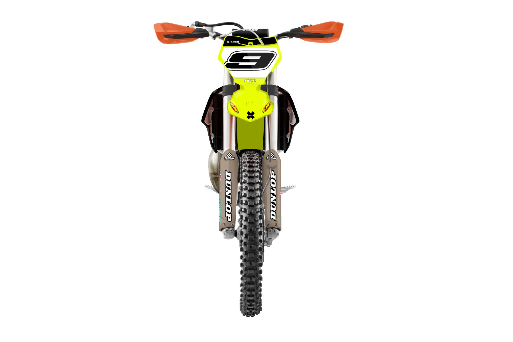 «Lucent Neon» — готовый комплект графики серии Flow для KTM Offroad Graphic Kit KTM XC 125 2019. В комплекте: графика на бак и боковые облицовки, крылья (переднее и заднее), передний щиток, номерные таблички, защита вилки. Материал: ПВХ-винил 80 мкр с холодной ламинацией 300 мкр, общая толщина 380 мкр; покрытие глянцевое или матовое на выбор. Устойчив к UV-излучению, воде, бензину и мойке высокого давления. Клей акриловый на сольвентной основе — постоянный, для гибких пластиков. На простых поверхностях монтируется без нагрева; для сложных изгибов рекомендуем фен. Этот пресет можно заказать как есть или взять за основу в конструкторе: поменять цвета, добавить стартовый номер и свой бренд. Производство — 3–5 рабочих дней, доставка по России СДЭКом или Почтой, по СНГ — курьерскими службами.