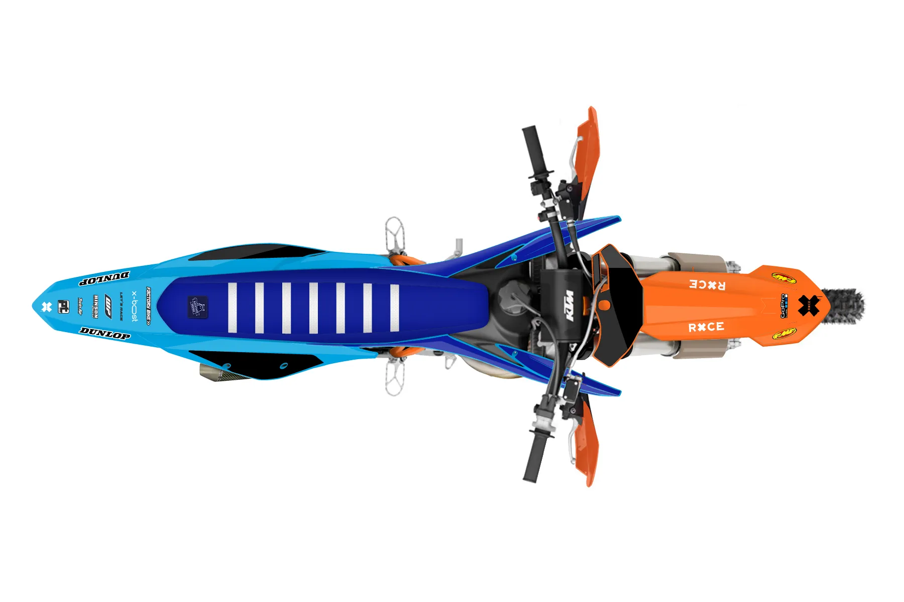 «Signature» — готовый комплект графики серии Flow для KTM Offroad Graphic Kit KTM XC 125 2019. В комплекте: графика на бак и боковые облицовки, крылья (переднее и заднее), передний щиток, номерные таблички, защита вилки. Материал: ПВХ-винил 80 мкр с холодной ламинацией 300 мкр, общая толщина 380 мкр; покрытие глянцевое или матовое на выбор. Устойчив к UV-излучению, воде, бензину и мойке высокого давления. Клей акриловый на сольвентной основе — постоянный, для гибких пластиков. На простых поверхностях монтируется без нагрева; для сложных изгибов рекомендуем фен. Этот пресет можно заказать как есть или взять за основу в конструкторе: поменять цвета, добавить стартовый номер и свой бренд. Производство — 3–5 рабочих дней, доставка по России СДЭКом или Почтой, по СНГ — курьерскими службами.