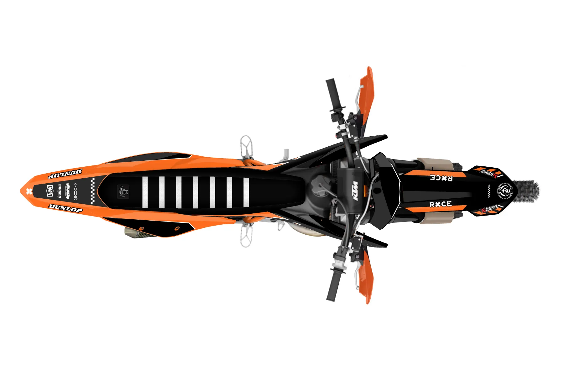 «Mental» — готовый комплект графики серии Maverick для KTM Offroad Graphic Kit KTM XC 125 2019. В комплекте: графика на бак и боковые облицовки, крылья (переднее и заднее), передний щиток, номерные таблички, защита вилки. Материал: ПВХ-винил 80 мкр с холодной ламинацией 300 мкр, общая толщина 380 мкр; покрытие глянцевое или матовое на выбор. Устойчив к UV-излучению, воде, бензину и мойке высокого давления. Клей акриловый на сольвентной основе — постоянный, для гибких пластиков. На простых поверхностях монтируется без нагрева; для сложных изгибов рекомендуем фен. Этот пресет можно заказать как есть или взять за основу в конструкторе: поменять цвета, добавить стартовый номер и свой бренд. Производство — 3–5 рабочих дней, доставка по России СДЭКом или Почтой, по СНГ — курьерскими службами.