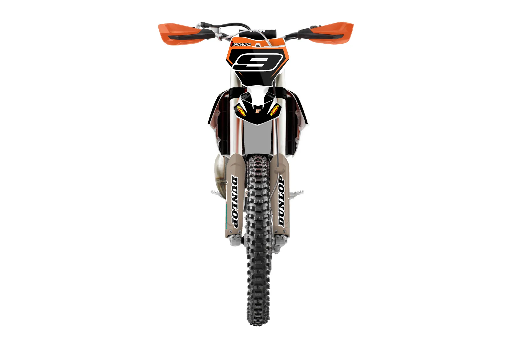 «CustomDesign» — готовый комплект графики серии Staple для KTM Offroad Graphic Kit KTM XC 125 2019. В комплекте: графика на бак и боковые облицовки, крылья (переднее и заднее), передний щиток, номерные таблички, защита вилки. Материал: ПВХ-винил 80 мкр с холодной ламинацией 300 мкр, общая толщина 380 мкр; покрытие глянцевое или матовое на выбор. Устойчив к UV-излучению, воде, бензину и мойке высокого давления. Клей акриловый на сольвентной основе — постоянный, для гибких пластиков. На простых поверхностях монтируется без нагрева; для сложных изгибов рекомендуем фен. Этот пресет можно заказать как есть или взять за основу в конструкторе: поменять цвета, добавить стартовый номер и свой бренд. Производство — 3–5 рабочих дней, доставка по России СДЭКом или Почтой, по СНГ — курьерскими службами.