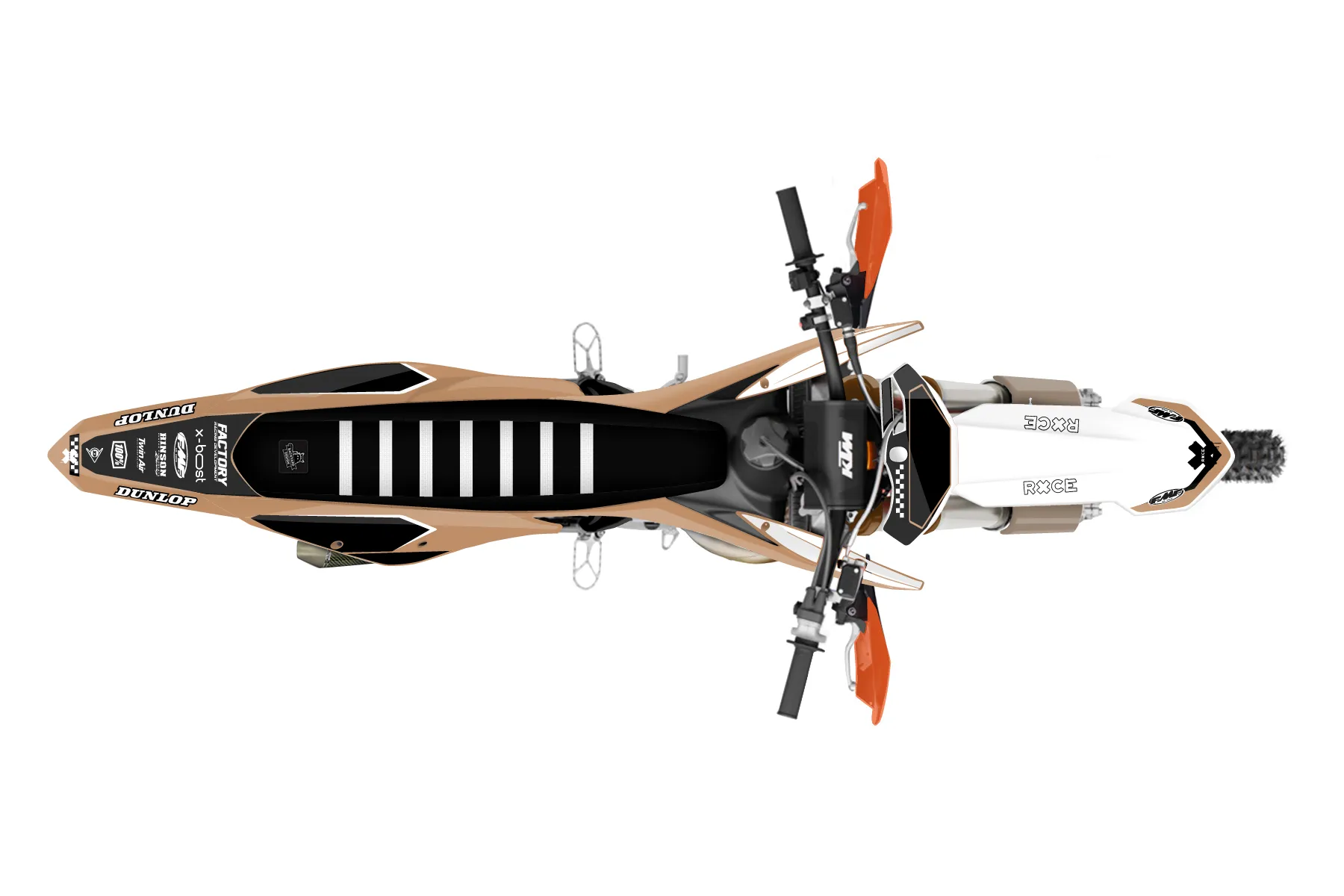 «Polite» — готовый комплект графики серии Staple для KTM Offroad Graphic Kit KTM XC 125 2019. В комплекте: графика на бак и боковые облицовки, крылья (переднее и заднее), передний щиток, номерные таблички, защита вилки. Материал: ПВХ-винил 80 мкр с холодной ламинацией 300 мкр, общая толщина 380 мкр; покрытие глянцевое или матовое на выбор. Устойчив к UV-излучению, воде, бензину и мойке высокого давления. Клей акриловый на сольвентной основе — постоянный, для гибких пластиков. На простых поверхностях монтируется без нагрева; для сложных изгибов рекомендуем фен. Этот пресет можно заказать как есть или взять за основу в конструкторе: поменять цвета, добавить стартовый номер и свой бренд. Производство — 3–5 рабочих дней, доставка по России СДЭКом или Почтой, по СНГ — курьерскими службами.