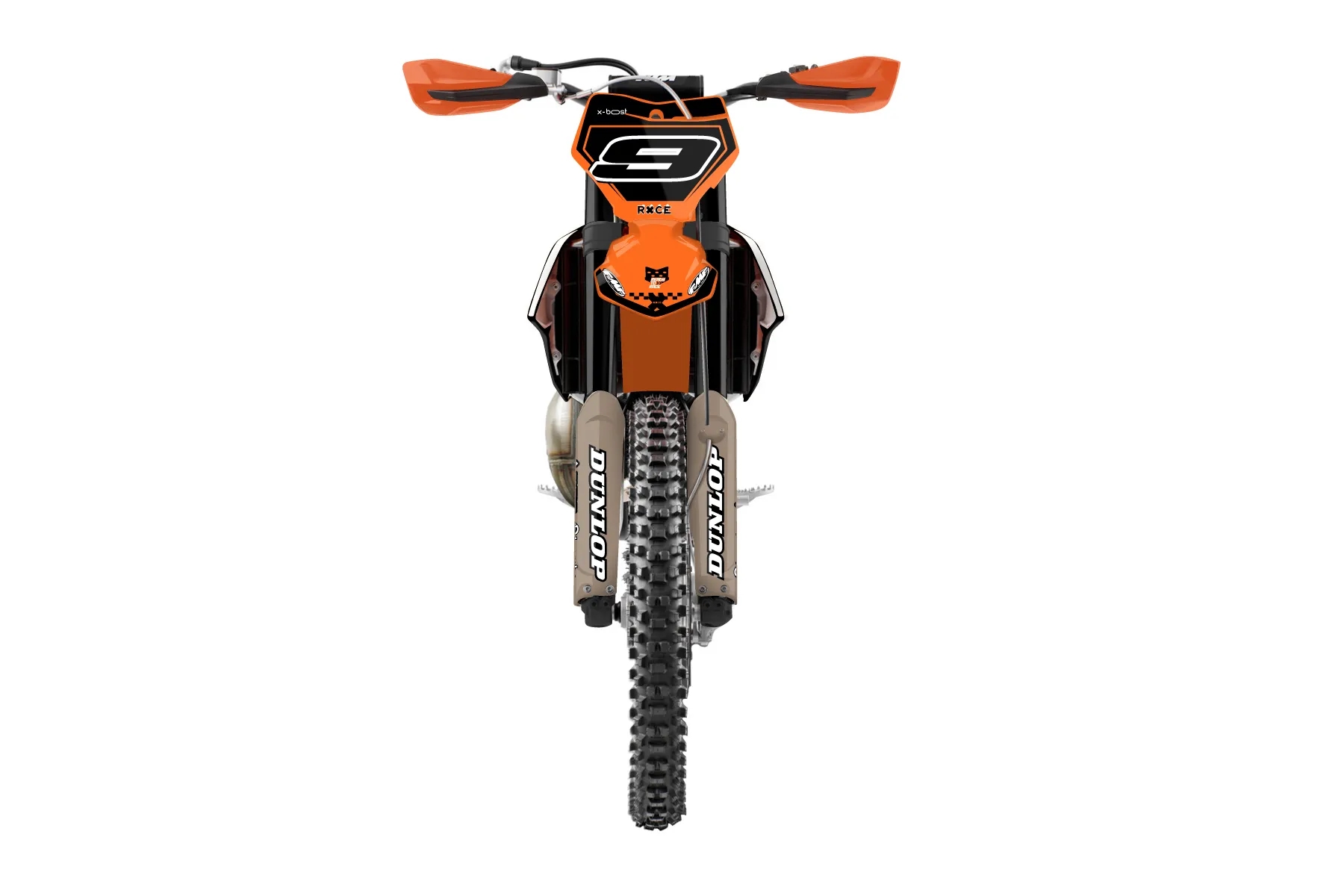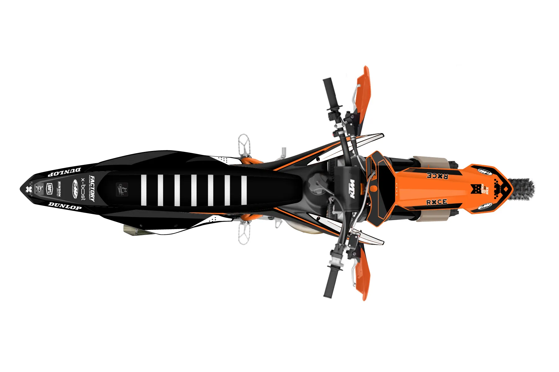 «RacerX» — готовый комплект графики серии Staple для KTM Offroad Graphic Kit KTM XC 125 2019. В комплекте: графика на бак и боковые облицовки, крылья (переднее и заднее), передний щиток, номерные таблички, защита вилки. Материал: ПВХ-винил 80 мкр с холодной ламинацией 300 мкр, общая толщина 380 мкр; покрытие глянцевое или матовое на выбор. Устойчив к UV-излучению, воде, бензину и мойке высокого давления. Клей акриловый на сольвентной основе — постоянный, для гибких пластиков. На простых поверхностях монтируется без нагрева; для сложных изгибов рекомендуем фен. Этот пресет можно заказать как есть или взять за основу в конструкторе: поменять цвета, добавить стартовый номер и свой бренд. Производство — 3–5 рабочих дней, доставка по России СДЭКом или Почтой, по СНГ — курьерскими службами.