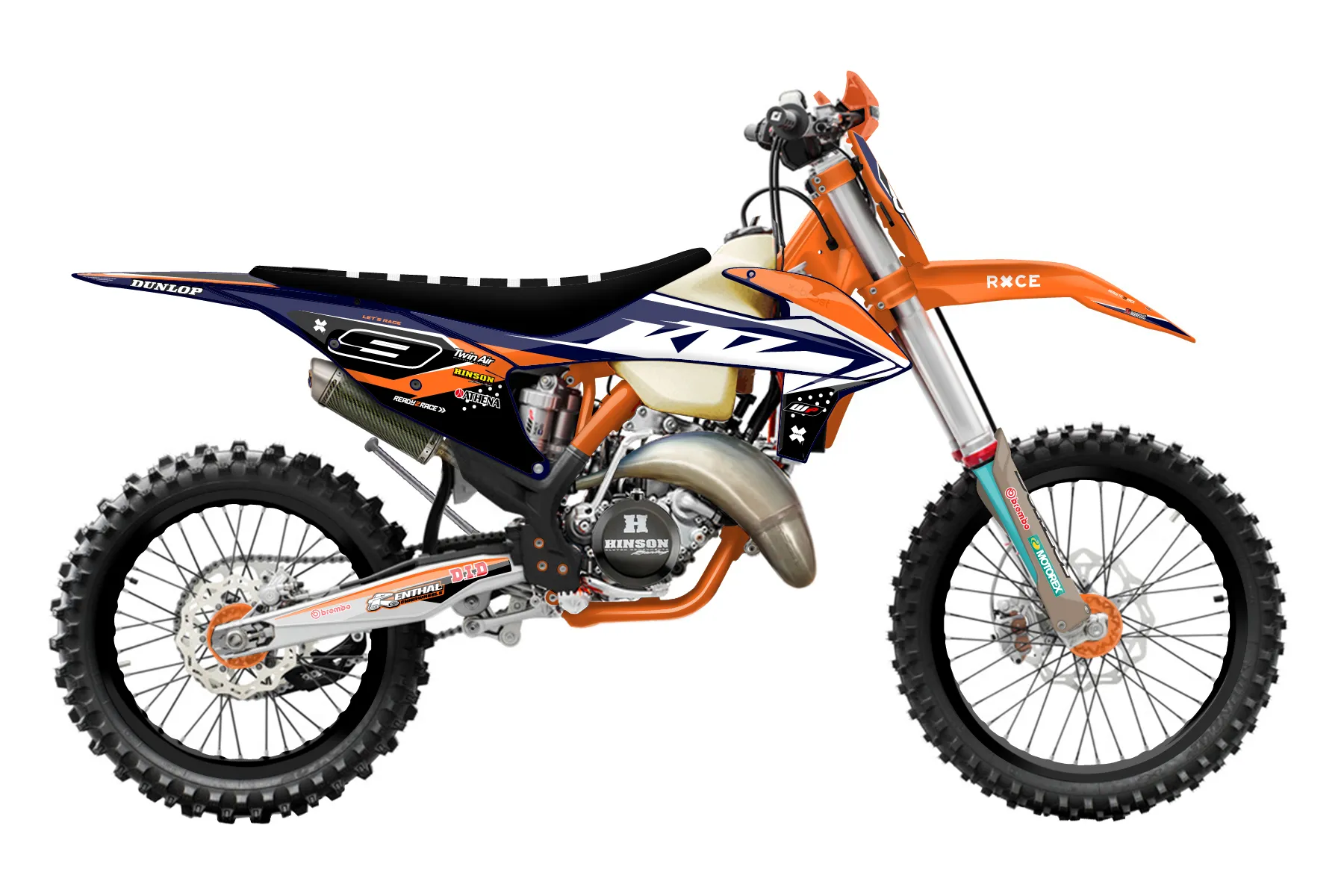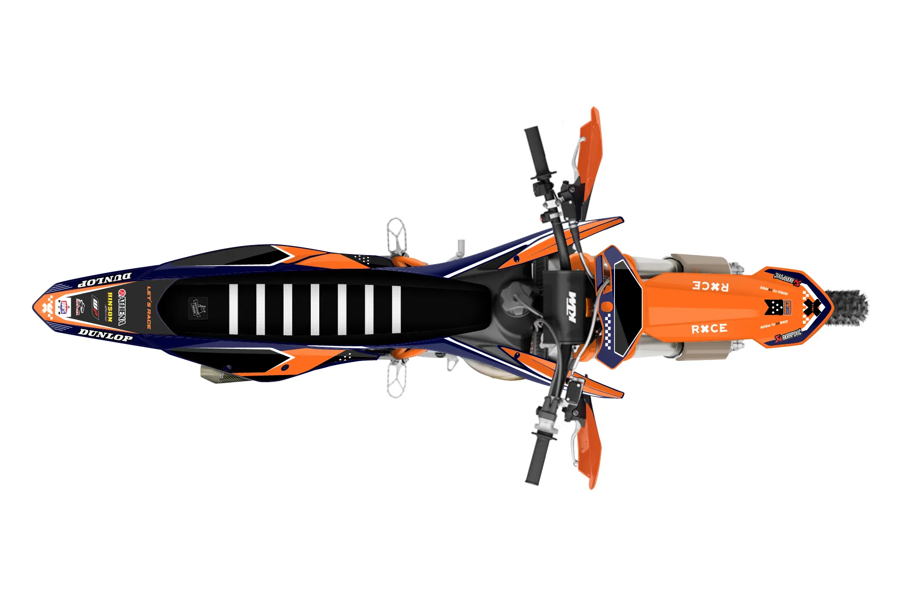 «Rage» — готовый комплект графики серии Staple для KTM Offroad Graphic Kit KTM XC 125 2019. В комплекте: графика на бак и боковые облицовки, крылья (переднее и заднее), передний щиток, номерные таблички, защита вилки. Материал: ПВХ-винил 80 мкр с холодной ламинацией 300 мкр, общая толщина 380 мкр; покрытие глянцевое или матовое на выбор. Устойчив к UV-излучению, воде, бензину и мойке высокого давления. Клей акриловый на сольвентной основе — постоянный, для гибких пластиков. На простых поверхностях монтируется без нагрева; для сложных изгибов рекомендуем фен. Этот пресет можно заказать как есть или взять за основу в конструкторе: поменять цвета, добавить стартовый номер и свой бренд. Производство — 3–5 рабочих дней, доставка по России СДЭКом или Почтой, по СНГ — курьерскими службами.