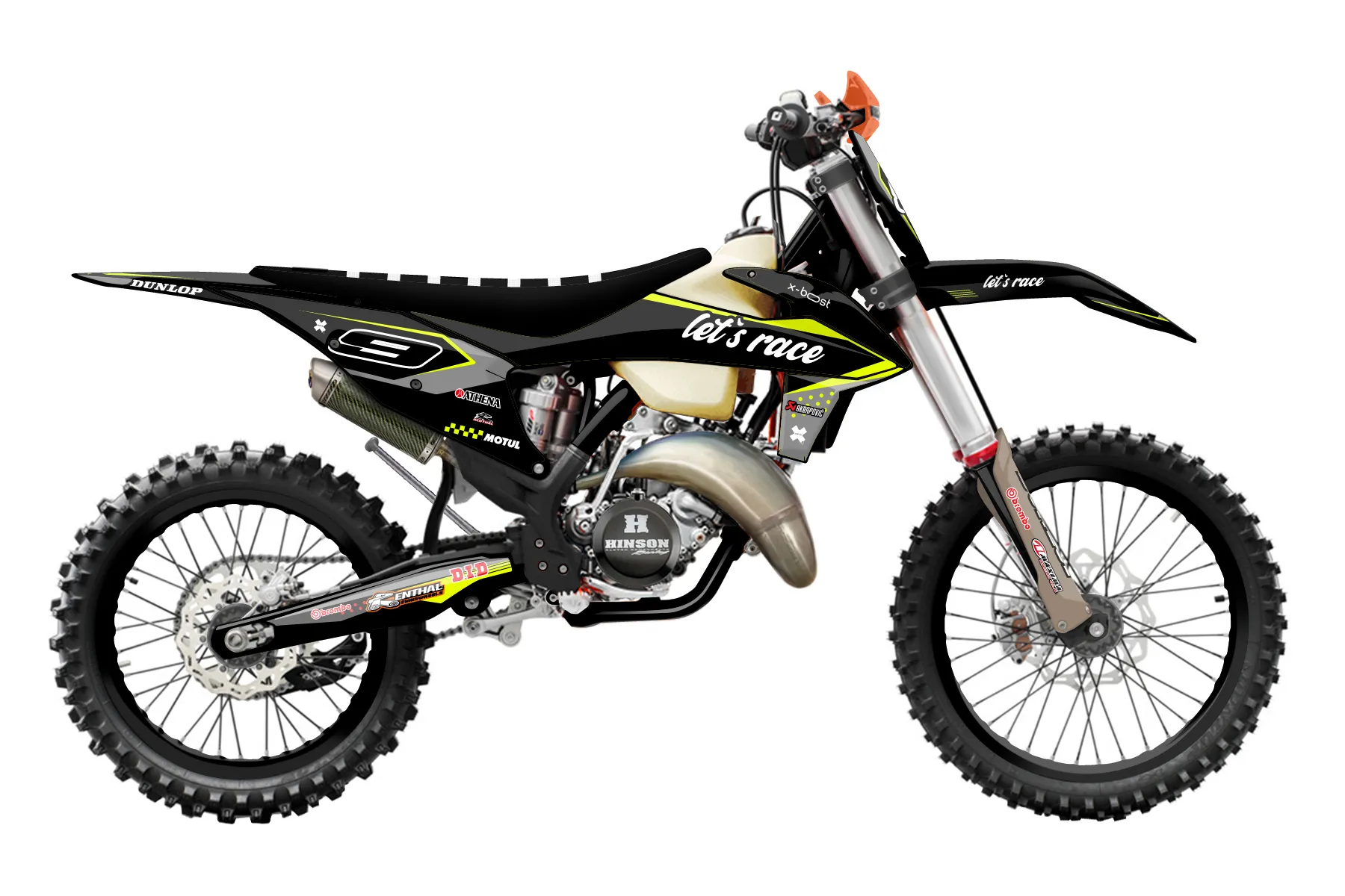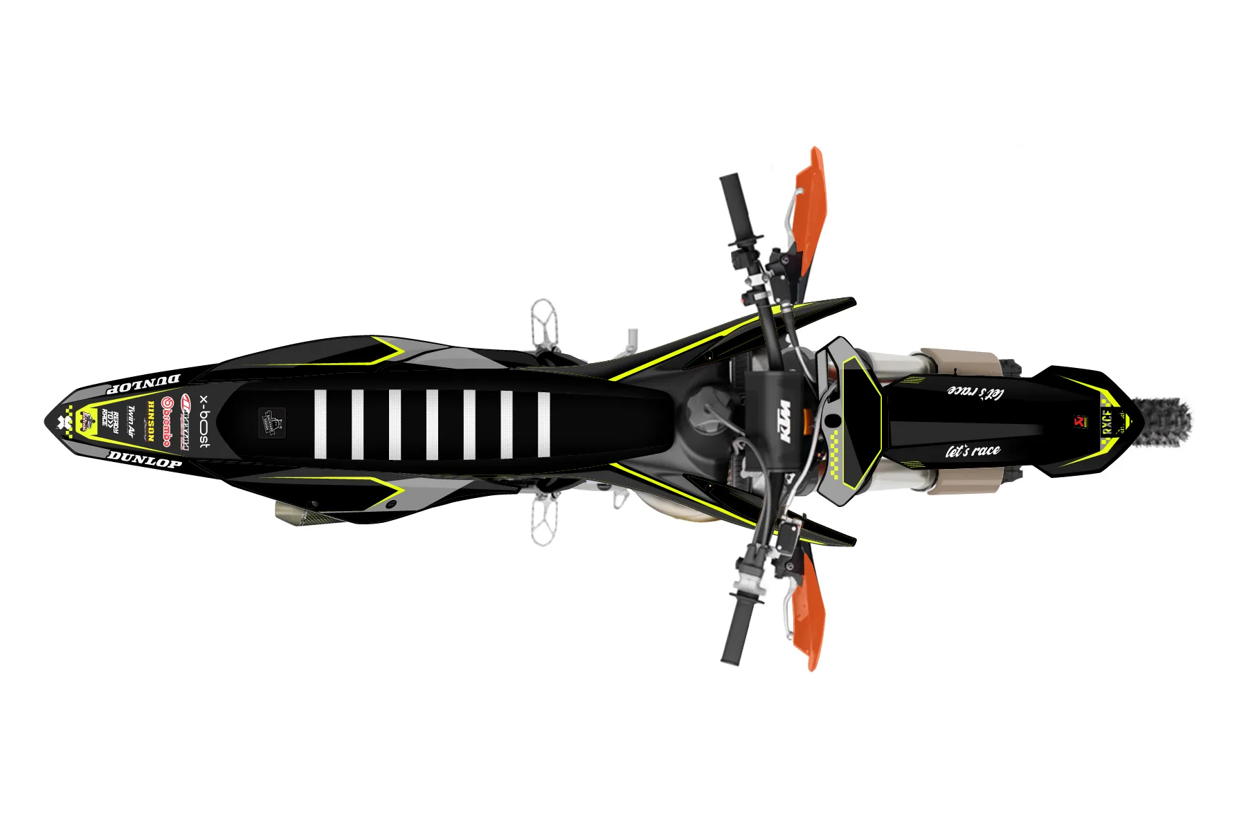 «Refuse Neon» — готовый комплект графики серии Staple для KTM Offroad Graphic Kit KTM XC 125 2019. В комплекте: графика на бак и боковые облицовки, крылья (переднее и заднее), передний щиток, номерные таблички, защита вилки. Материал: ПВХ-винил 80 мкр с холодной ламинацией 300 мкр, общая толщина 380 мкр; покрытие глянцевое или матовое на выбор. Устойчив к UV-излучению, воде, бензину и мойке высокого давления. Клей акриловый на сольвентной основе — постоянный, для гибких пластиков. На простых поверхностях монтируется без нагрева; для сложных изгибов рекомендуем фен. Этот пресет можно заказать как есть или взять за основу в конструкторе: поменять цвета, добавить стартовый номер и свой бренд. Производство — 3–5 рабочих дней, доставка по России СДЭКом или Почтой, по СНГ — курьерскими службами.