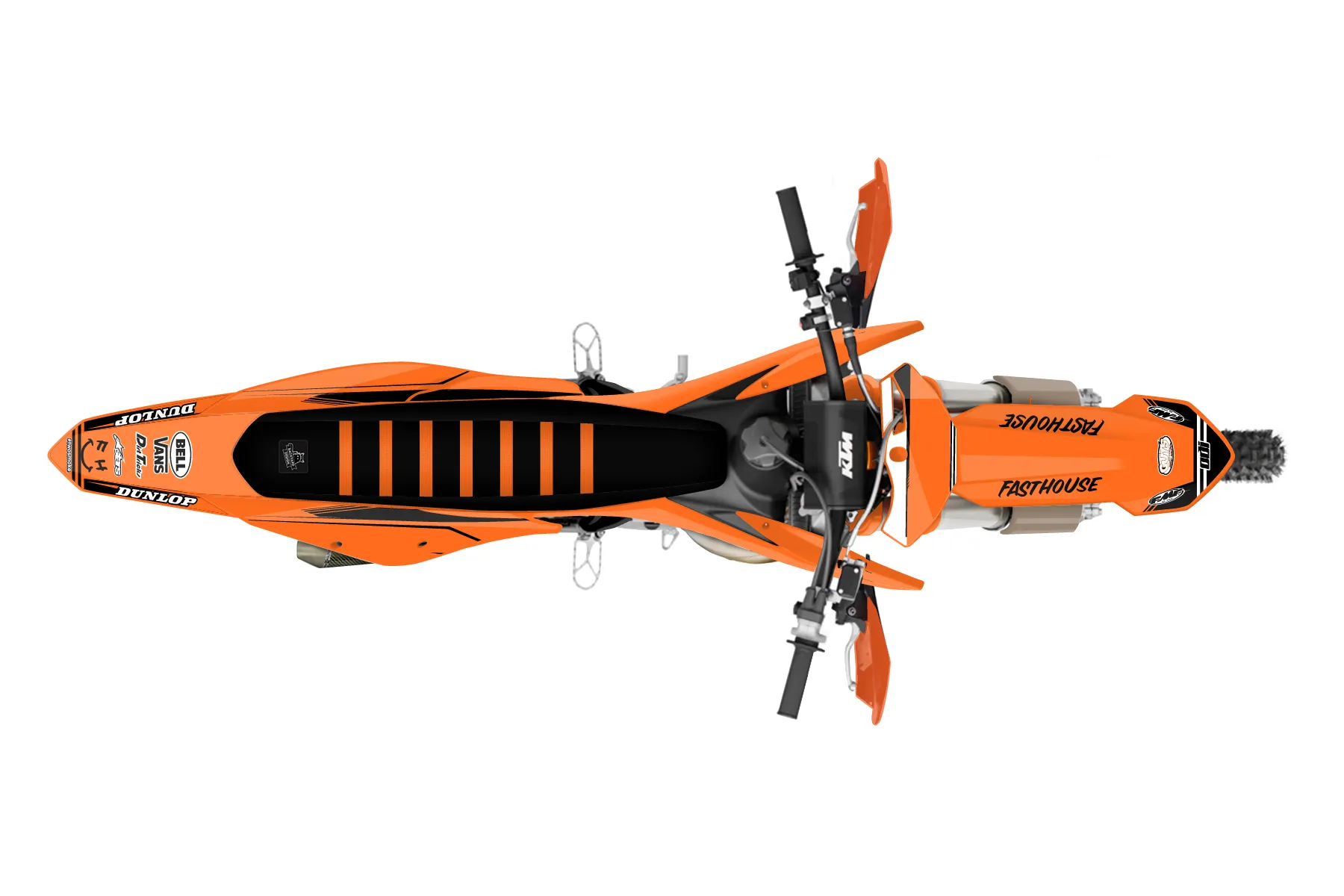 «125xc orange» — готовый комплект графики серии Untucked для KTM Offroad Graphic Kit KTM XC 125 2019. В комплекте: графика на бак и боковые облицовки, крылья (переднее и заднее), передний щиток, номерные таблички, защита вилки. Материал: ПВХ-винил 80 мкр с холодной ламинацией 300 мкр, общая толщина 380 мкр; покрытие глянцевое или матовое на выбор. Устойчив к UV-излучению, воде, бензину и мойке высокого давления. Клей акриловый на сольвентной основе — постоянный, для гибких пластиков. На простых поверхностях монтируется без нагрева; для сложных изгибов рекомендуем фен. Этот пресет можно заказать как есть или взять за основу в конструкторе: поменять цвета, добавить стартовый номер и свой бренд. Производство — 3–5 рабочих дней, доставка по России СДЭКом или Почтой, по СНГ — курьерскими службами.